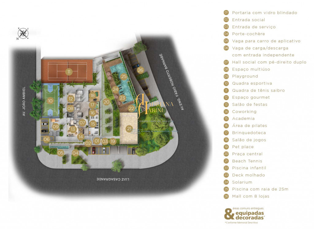 Vaso inteligente no lavabo: Tecnologia que alia funcionalidade e requinte; Guarita com vidro blindado: Segurança de alto nível;