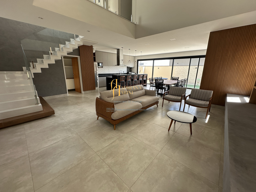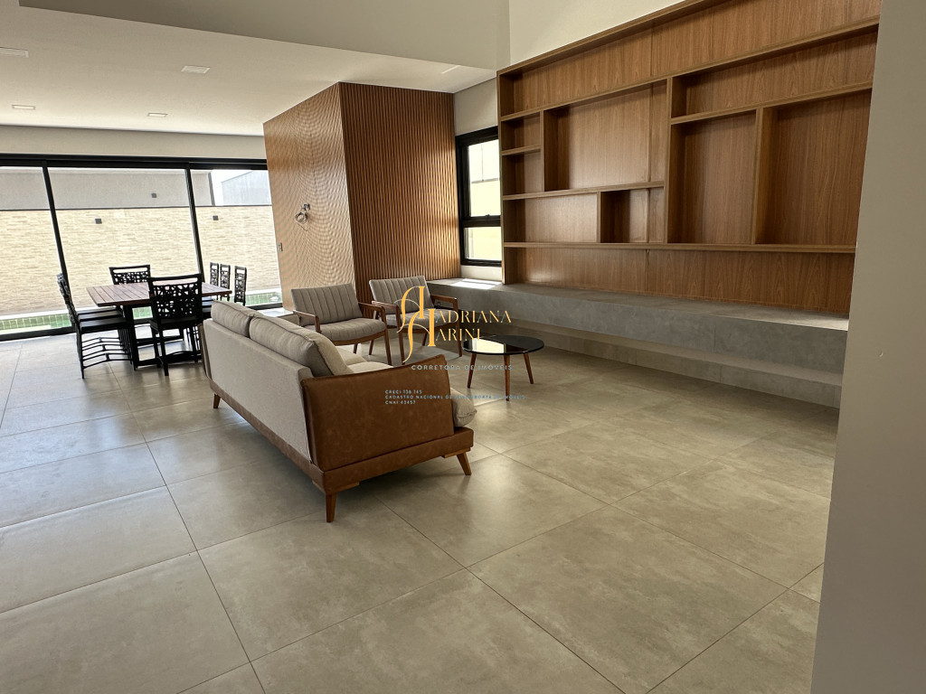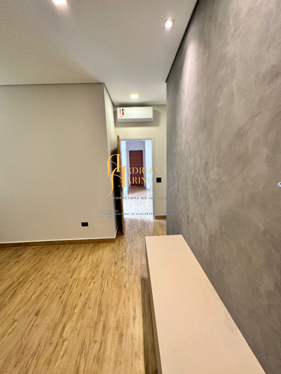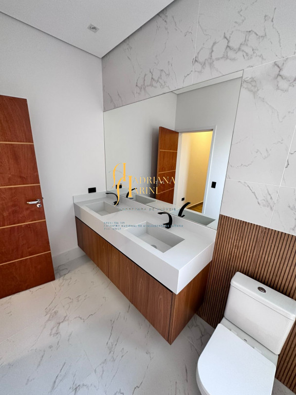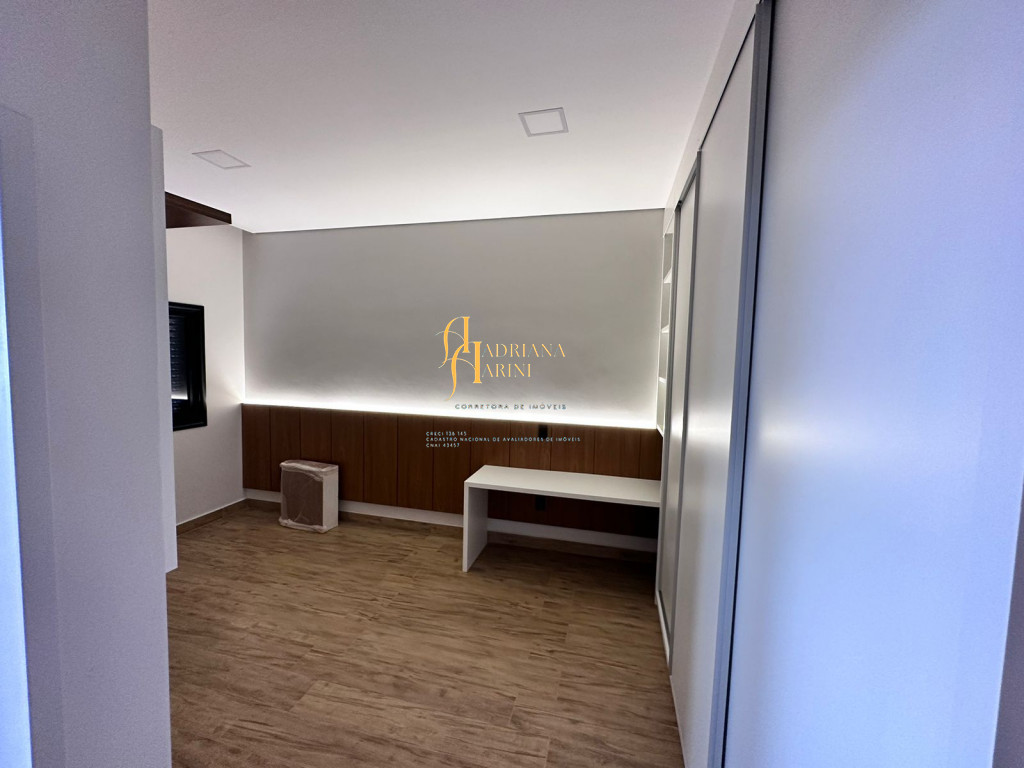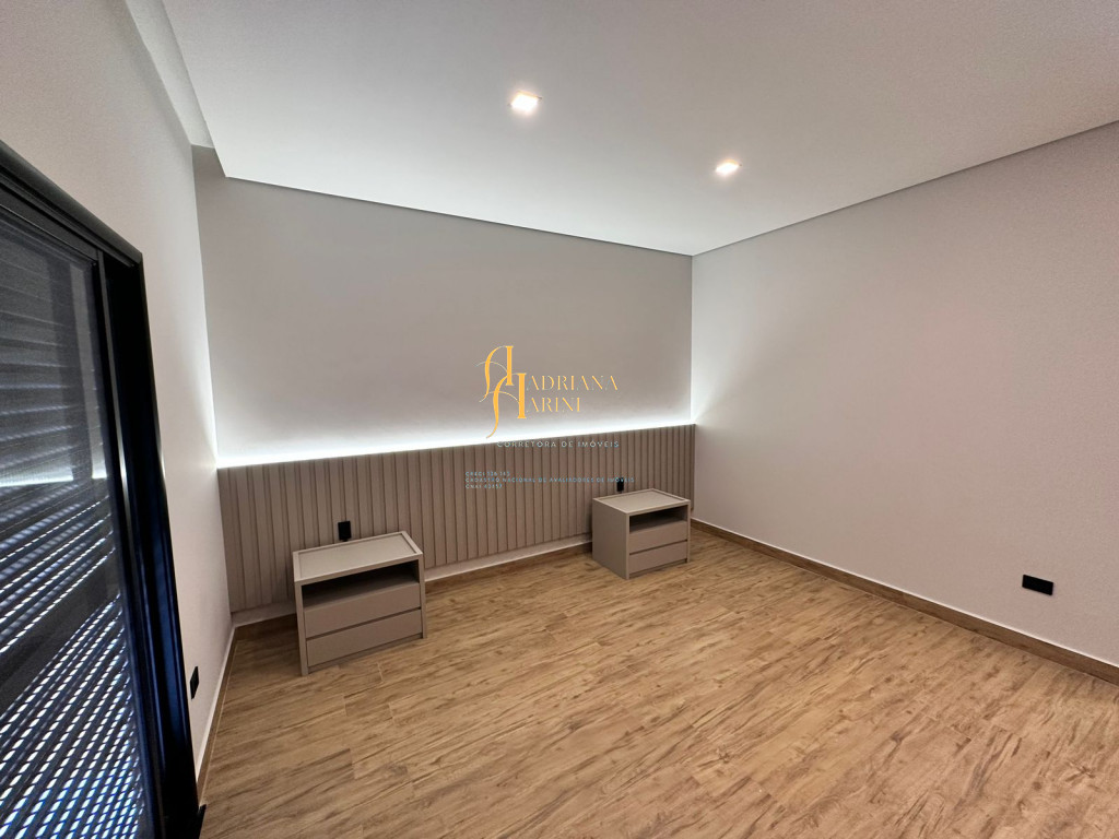 3 quartos (suítes); 1 lavabo; sala de jantar; espaço living; sala de TV; escritório; cozinha gourmet com churrasqueira e móveis embutidos: coock-top 5 bocas, coifa, forno embutido, micro-ondas, geladeira, frigobar, lava louça, máquina de lavar roupas, purificador de água, lavanderia com máquina de lavar. Aquecedor solar – boiler com 400L; iluminação; paisagismo; piscina com cascata; preparação para aquecedor solar. Vaga de garagem para 2 carros cobertos e 2 descobertos.