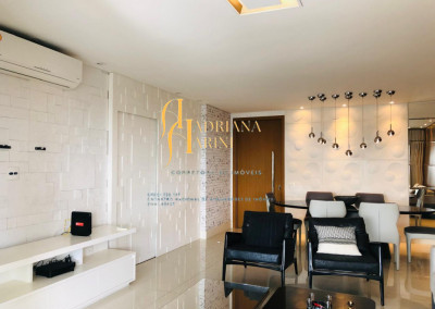3 suítes; 1 lavabo;1 banheiro social para os funcionários; sala 2 ambientes bem amplos; cozinha integrada à sala de jantar e varanda gourmet; vaga para 2 carros gavetas. O apartamento está com móveis planejados em todos os ambientes.