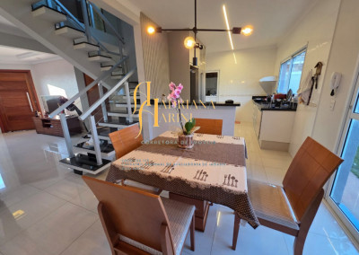 1 banheiro social, 2 lavabos, sala 2 ambientes, cozinha com móveis planejados, fogão cooktop e coifa, área gourmet ampla com churrasqueira e armários, lavanderia coberta com armários planejados, canil e jardim nos fundos. Vaga de garagem para 4 carros sendo 2 cobertos e 2 descobertos.