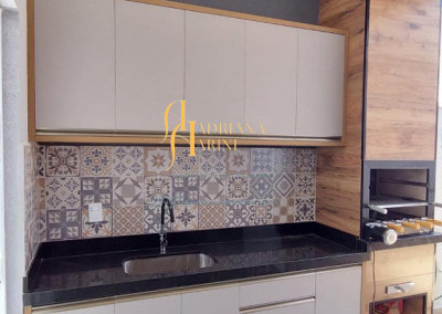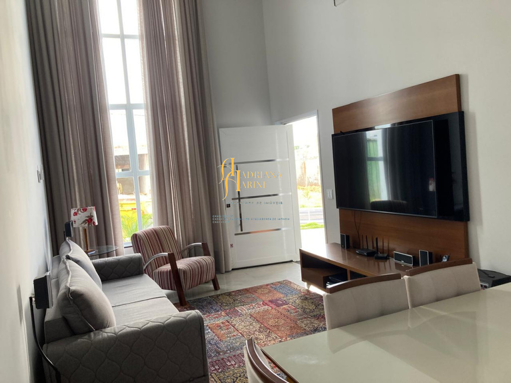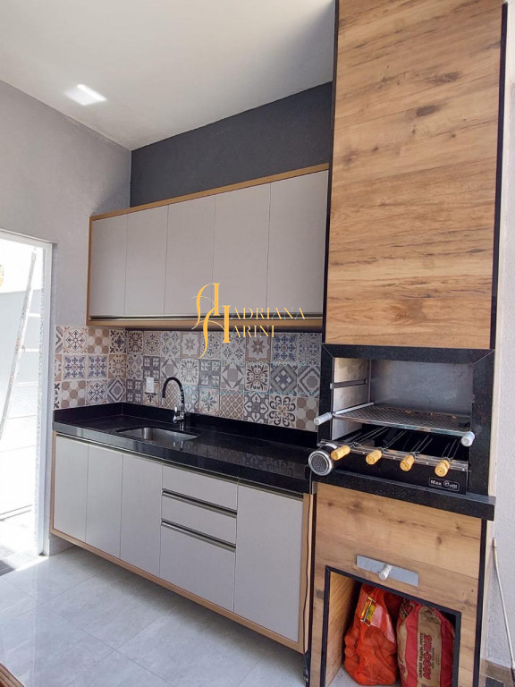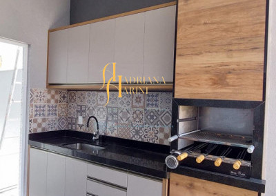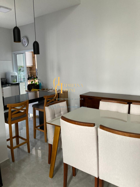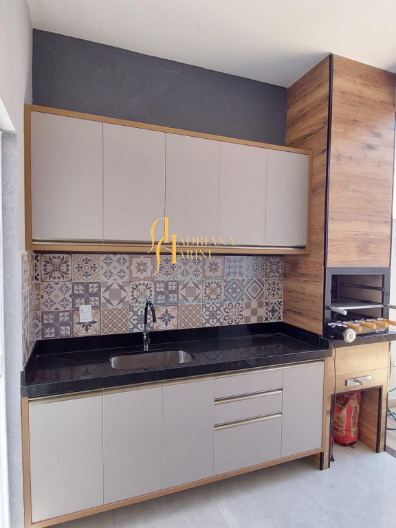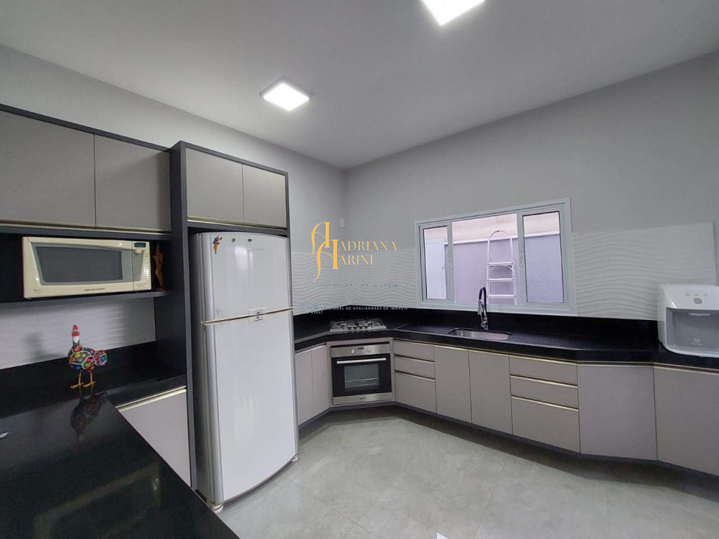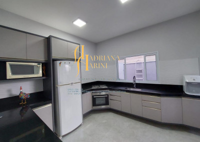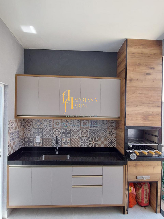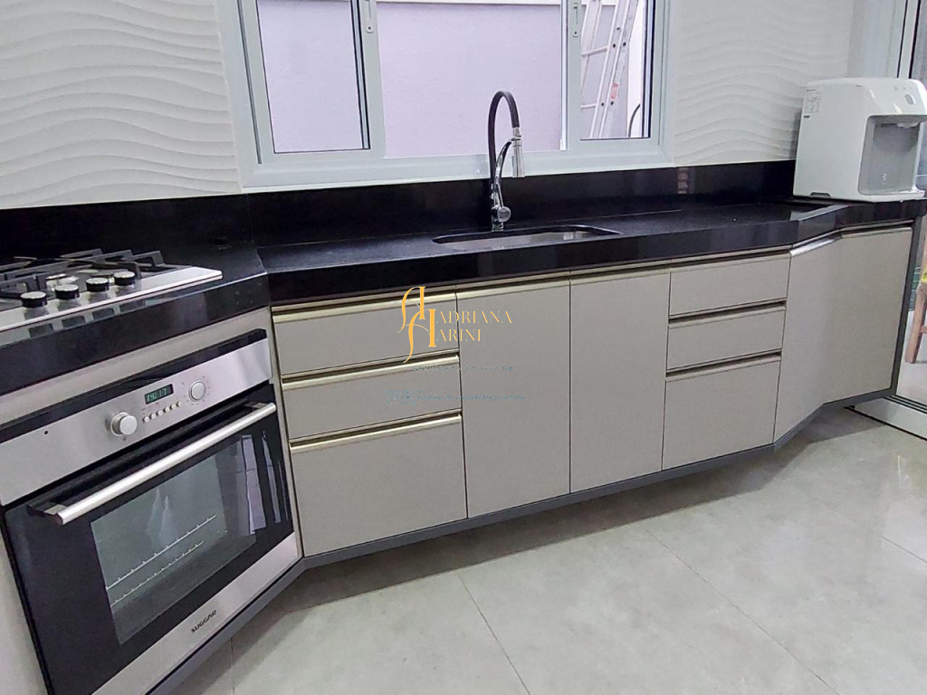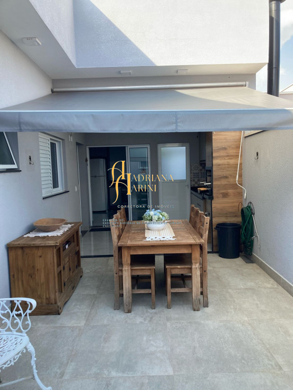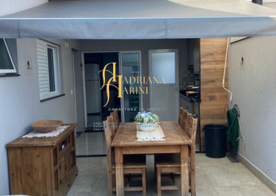 3 dormitórios sendo 1 suíte com closet; sala de estar e sala de jantar com pé direito alto de 4,5m de altura; lavabo; cozinha com móveis planejados e fogão, integrada à sala de jantar; lavanderia; área gourmet com churrasqueira (com grill)e armários planejados; toldo e ducha no quintal. Entrada lateral; vaga para 2 carros cobertos e 2 descobertos.