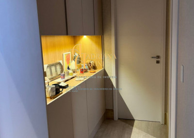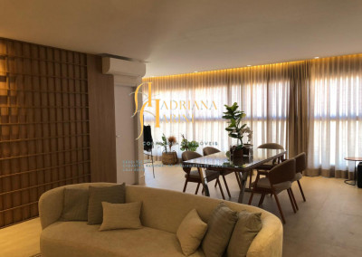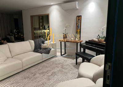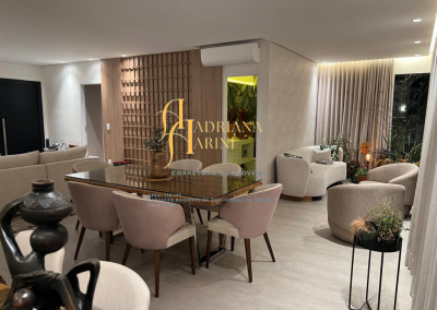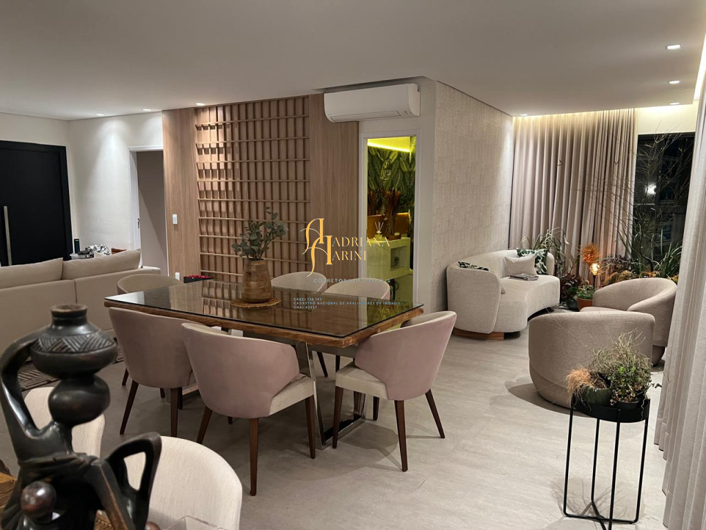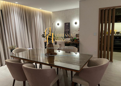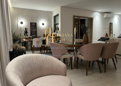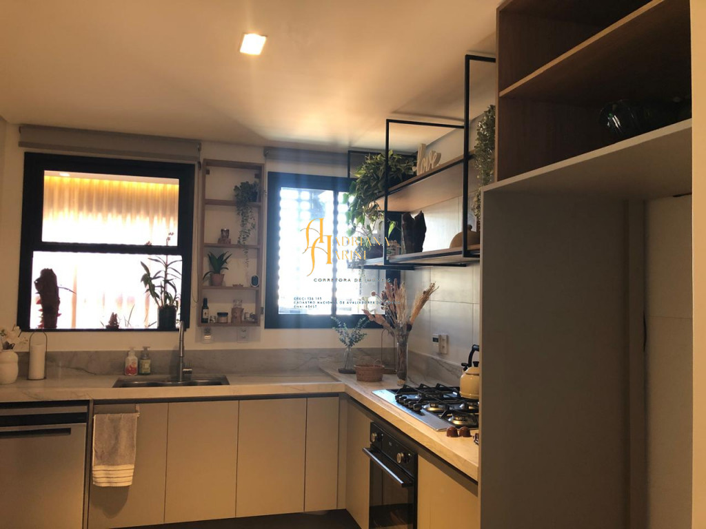 3 suítes sendo 2 com closet, totalmente planejadas; 1 lavabo; sala 3 ambientes amplo e arejado com home; cozinha com móveis planejados, forno elétrico e fogão cooktop; lavanderia com armários planejados; 2 vagas de garagem; área gourmet integrada ao living.