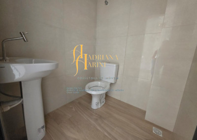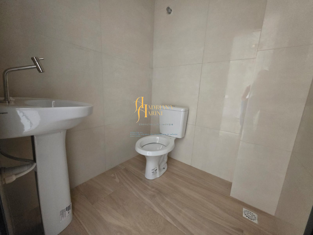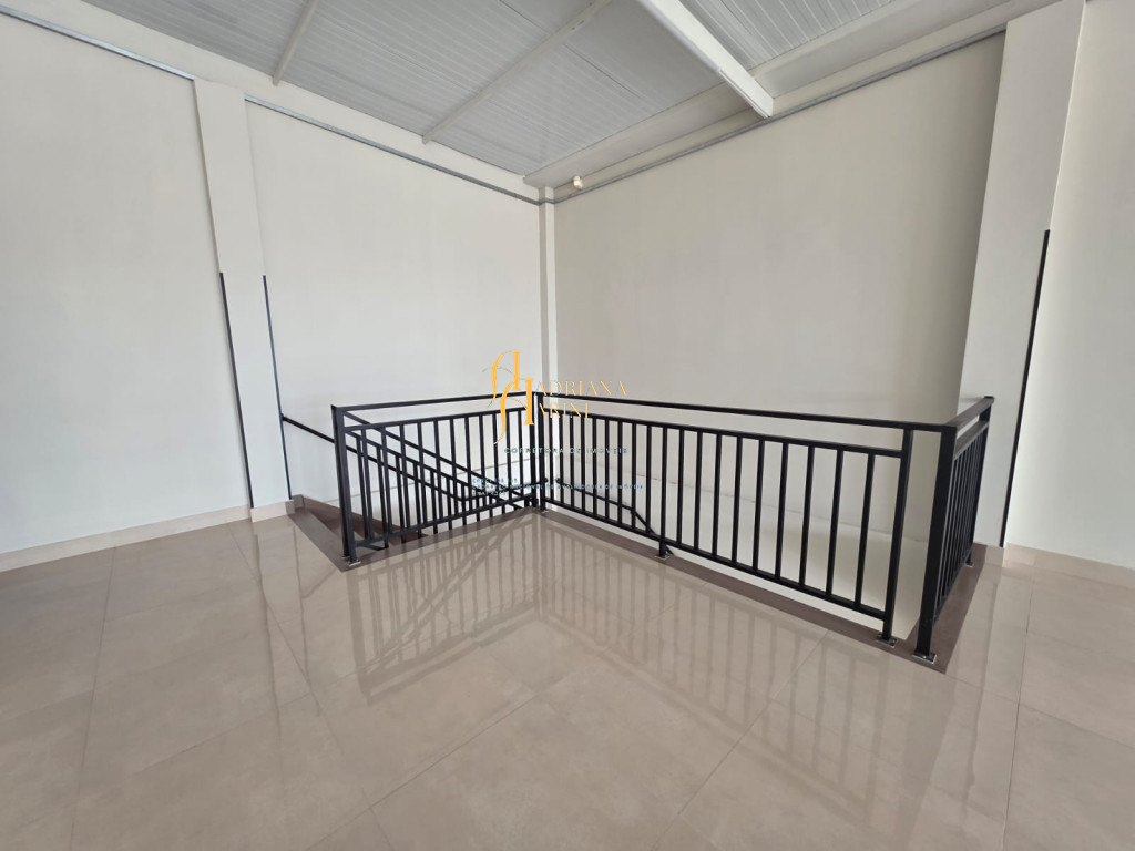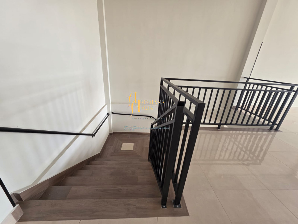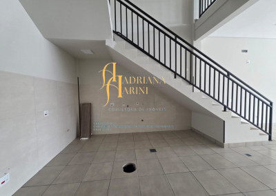 Infraestrutura completa: 2 banheiros acessíveis no piso inferior, 1 banheiro no piso superior, espaço preparado para copa e lavanderia.