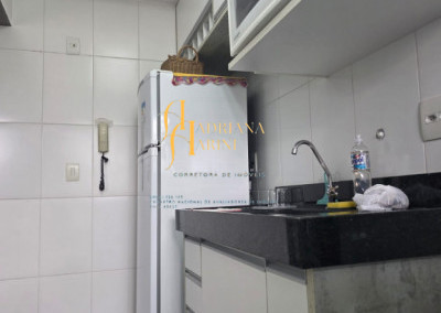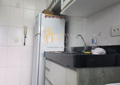 Condomínio com salão de festas, playground, piscina, área gourmet com churrasqueira, pia, geladeira e freezer.