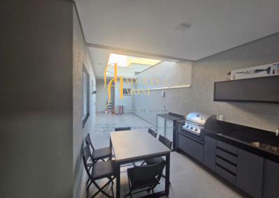 3 dormitórios sendo 1 com closet todo planejado; 1 banheiro social com armários; sala 2 ambientes; escritório com móveis planejados; cozinha com forno e fogão cooktop; lavanderia com armário; área gourmet com churrasqueira e armários planejados; vaga para 2 carros sendo 1 coberto e 1 descoberto.