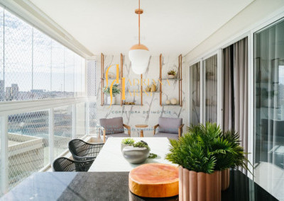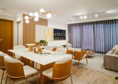 3 suítes totalmente planejados; 1 lavabo;1 banheiro social para os funcionários; sala de TV com home; sala de jantar (ambos bem amplos); cozinha com móveis planejados e equipada com cooktop e forno elétrico, integrada à sala de sala de jantar e varanda gourmet; vaga para 2 carros gavetas.