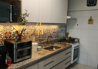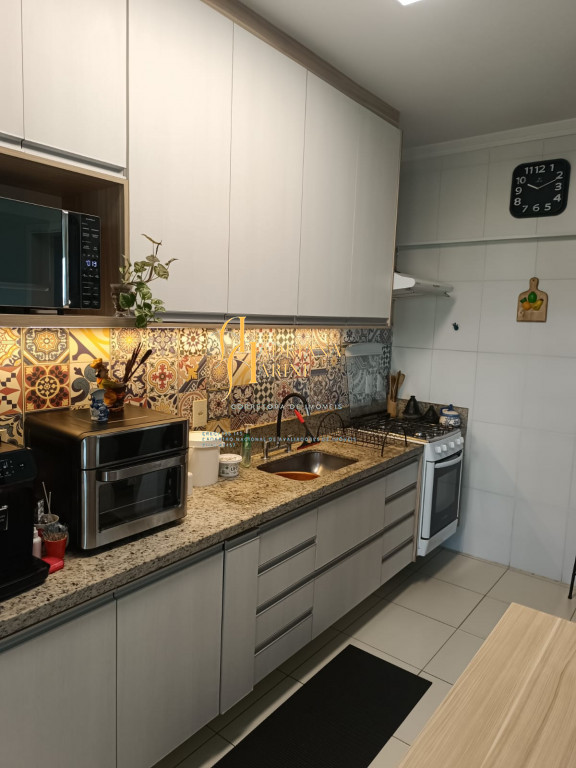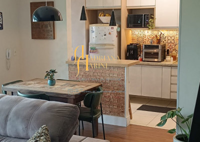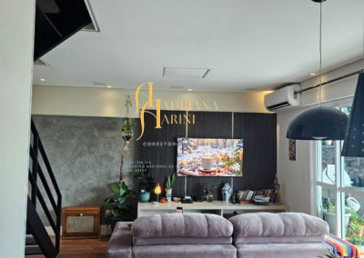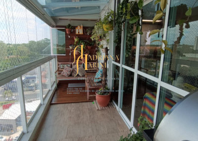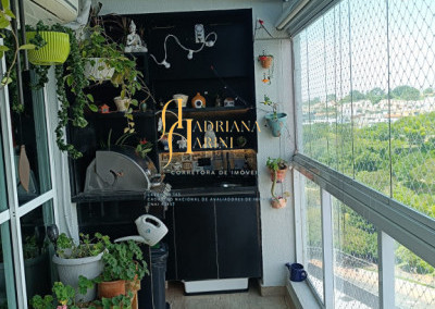 2 suítes (master com sacada e ar condicionado inverter); sala com iluminação automatizada, ar condicionado inverter 18k e caixas de som no teto; varanda gourmet fechada com vidro + churrasqueira + ar condicionado inverter; cozinha com móveis planejados; lavabo; lavanderia com móveis planejados; 2 vagas de garagem sendo 1 coberta e 1 descoberta.