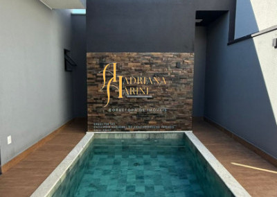 3 quartos sendo 1 suite com closet; 1 banheiro social; escritório, sala de TV com home; sala de jantar; cozinha com móveis planejados; lavanderia; área gourmet com churrasqueira e armários; piscina; vaga para 3 carros sendo 2 descoberto e 1 coberto.