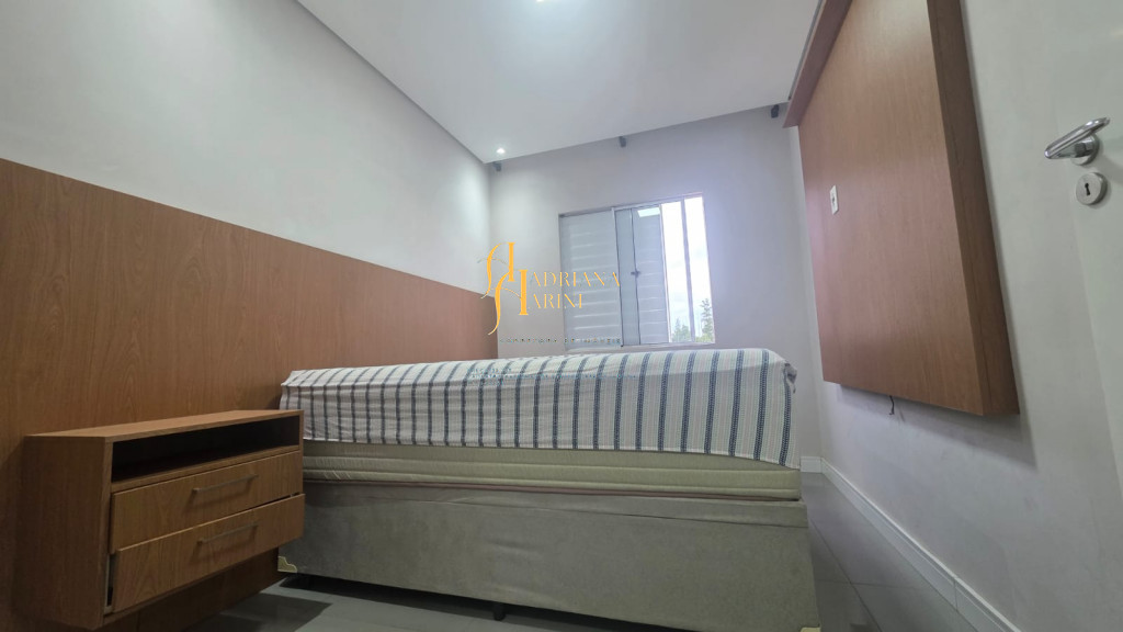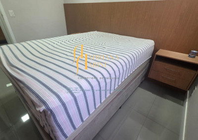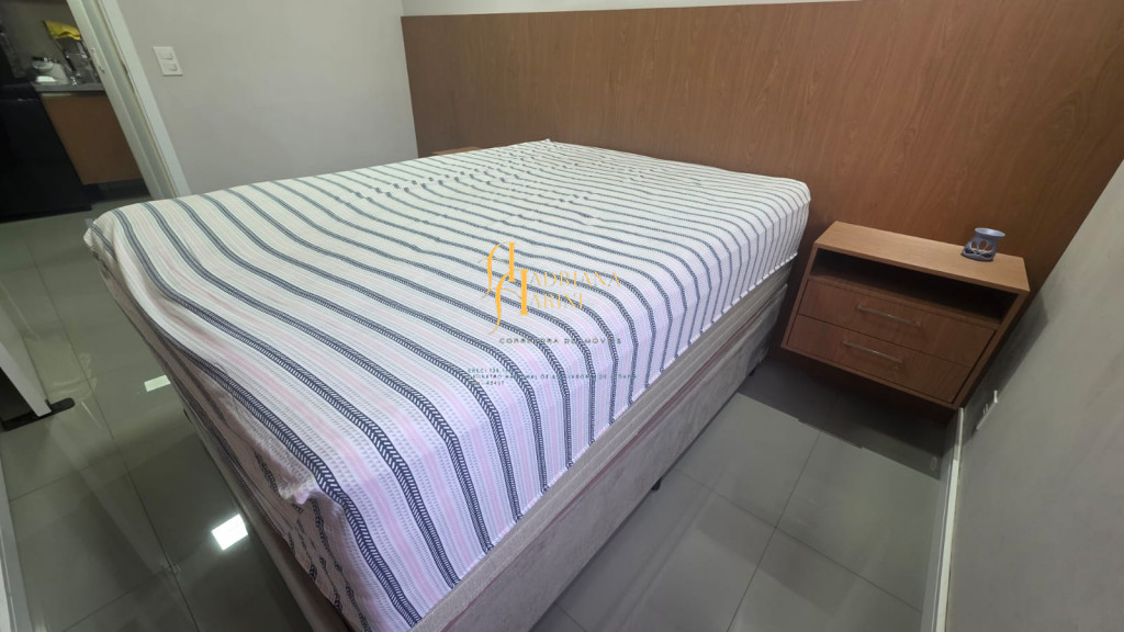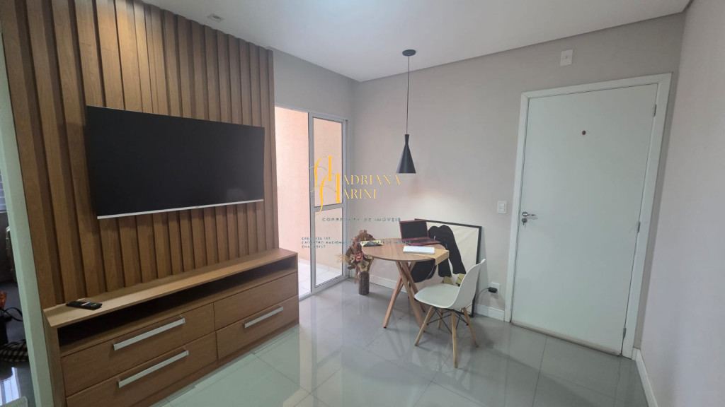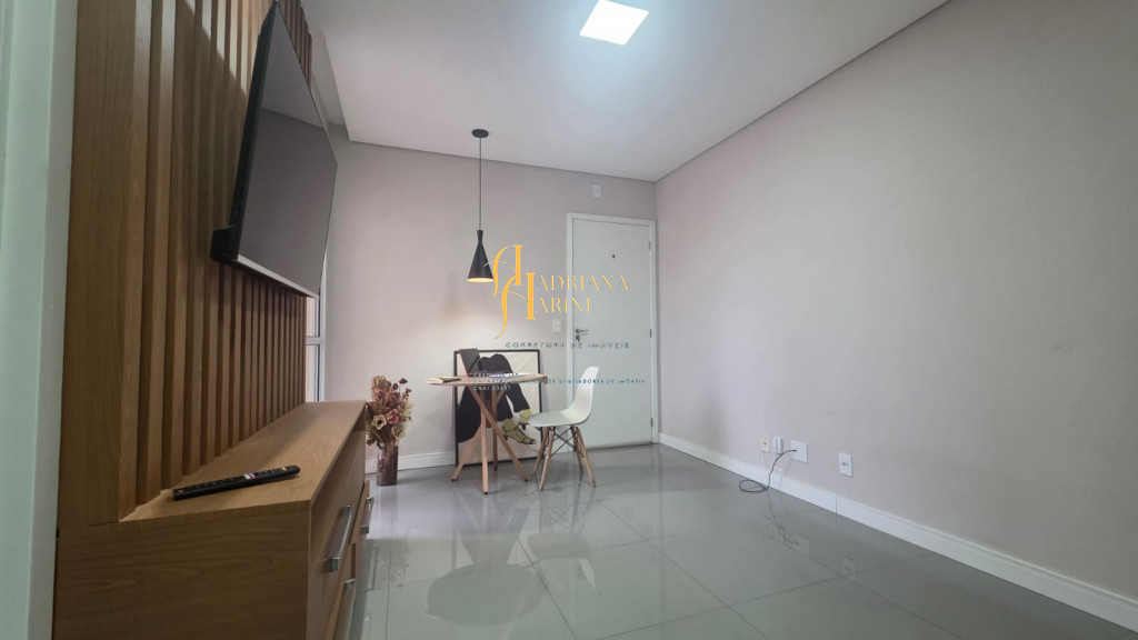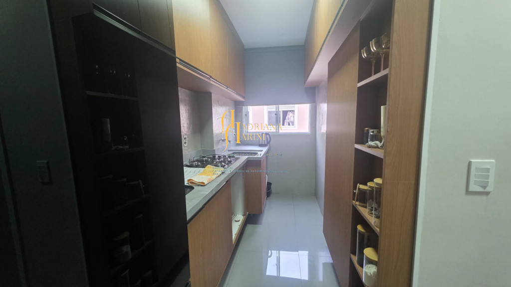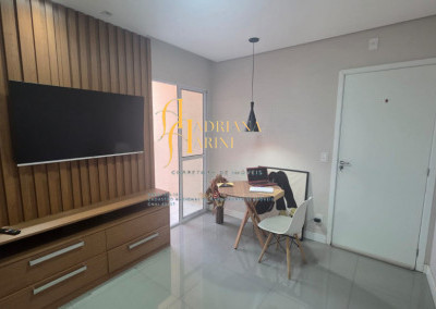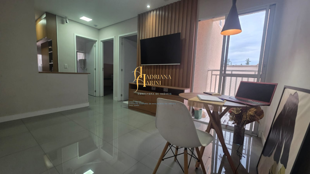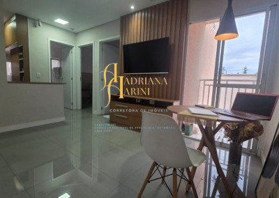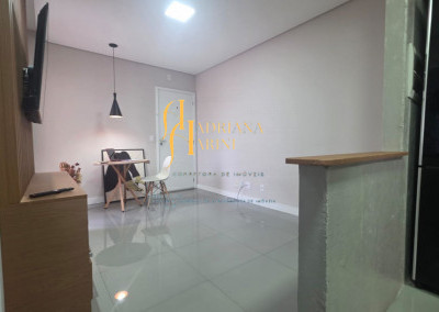 2 dormitórios totalmente planejados; sala com sacada, 2 ambientes com home, mesa e 1 cadeira; cozinha com móveis planejados, geladeira e cook top; 1 banheiro social com armários planejados; vaga para 1 carro coberto de frente para o prédio.