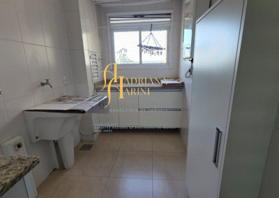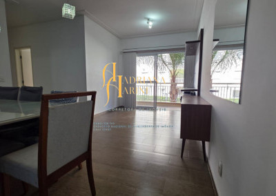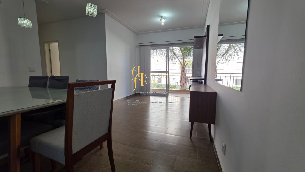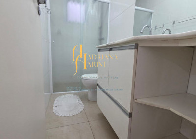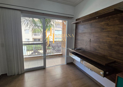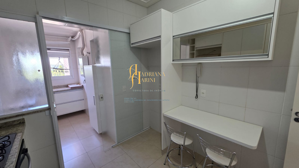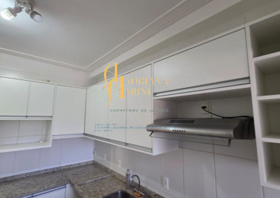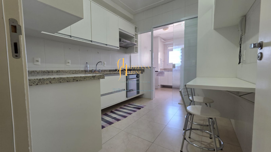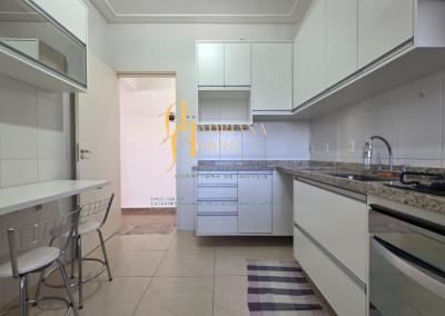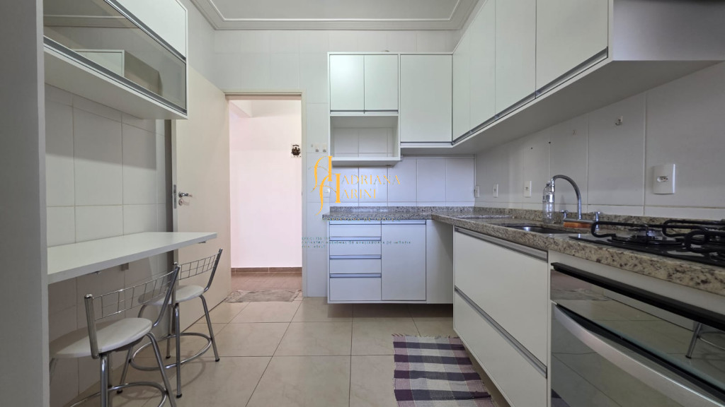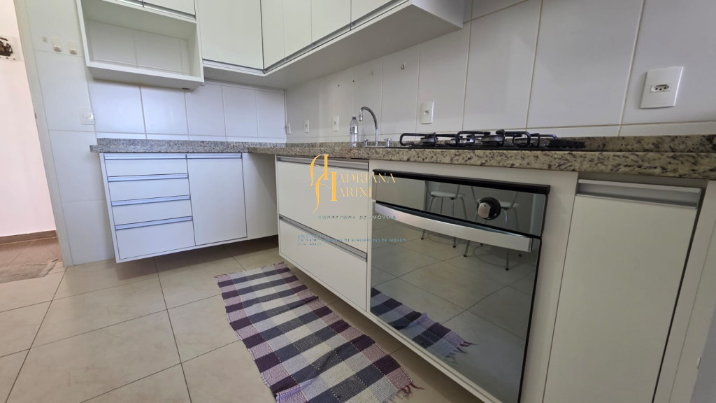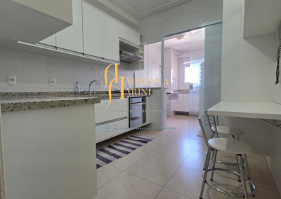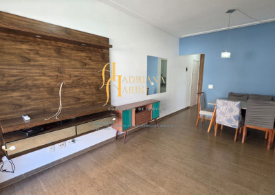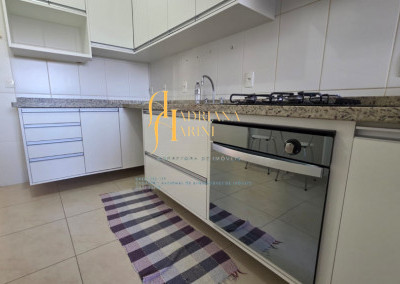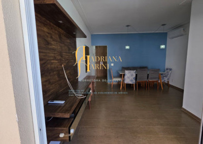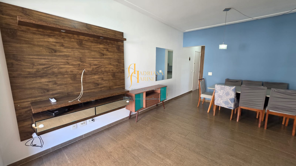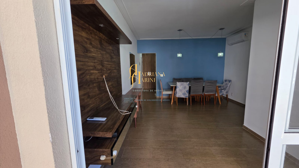 3 dormitórios/1suíte, quartos com armários e ar condicionado; sala 2 de TV com home e sala de jantar com mesa e cadeiras 6 lugares, ar condicionado e sacada; 1 banheiro social com armário; cozinha com móveis planejados, forno, fogão e coifa, mesa balcão com 2 bancos; lavanderia com armários; vaga para 2 carros cobertos.