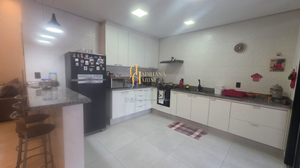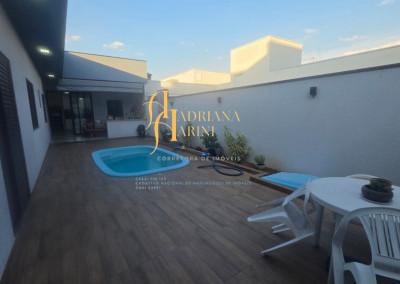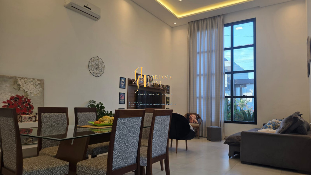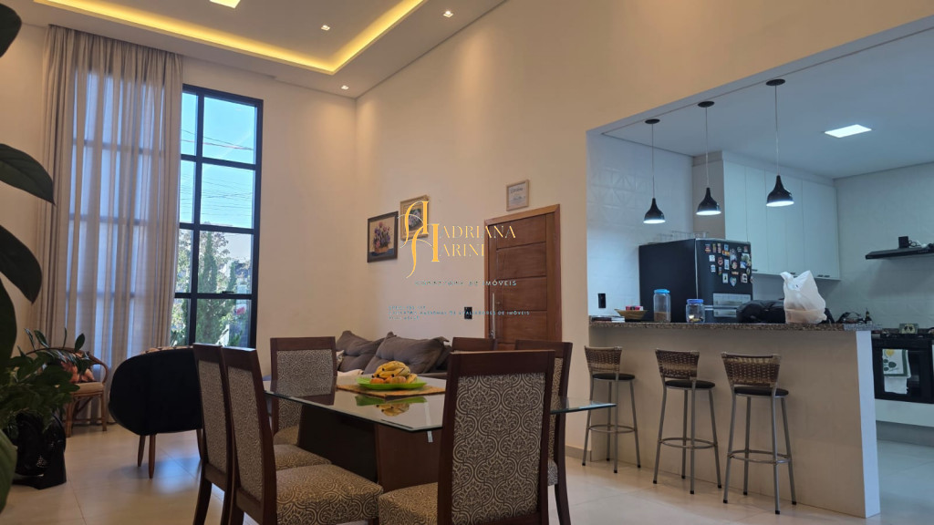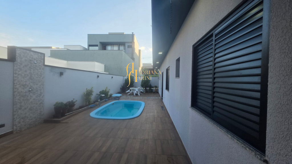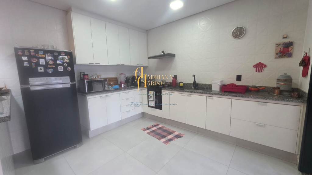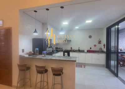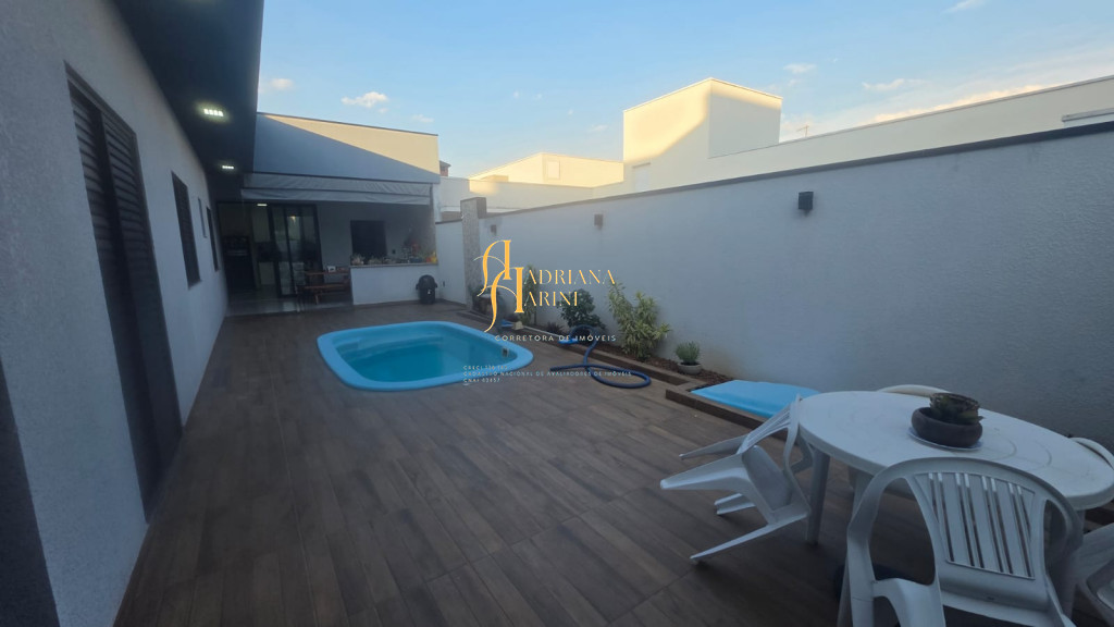 3 dormitórios sendo 1 suíte com closet; 1 banheiro social; 1 lavabo com 2 entradas, uma pelo interior da casa e outro pela área gourmet; sala de jantar e sala de TV com pé direito alto e luzes em Led; cozinha integrada à sala de jantar, com móveis planejados, fogão e forno; lavanderia coberta e com armários; área gourmet com churrasqueira e armários; piscina; vaga de garagem para 2 carros no coberto e 2 descobertos.
