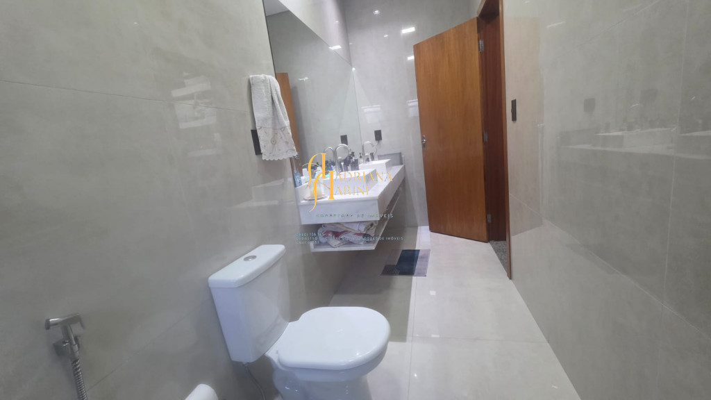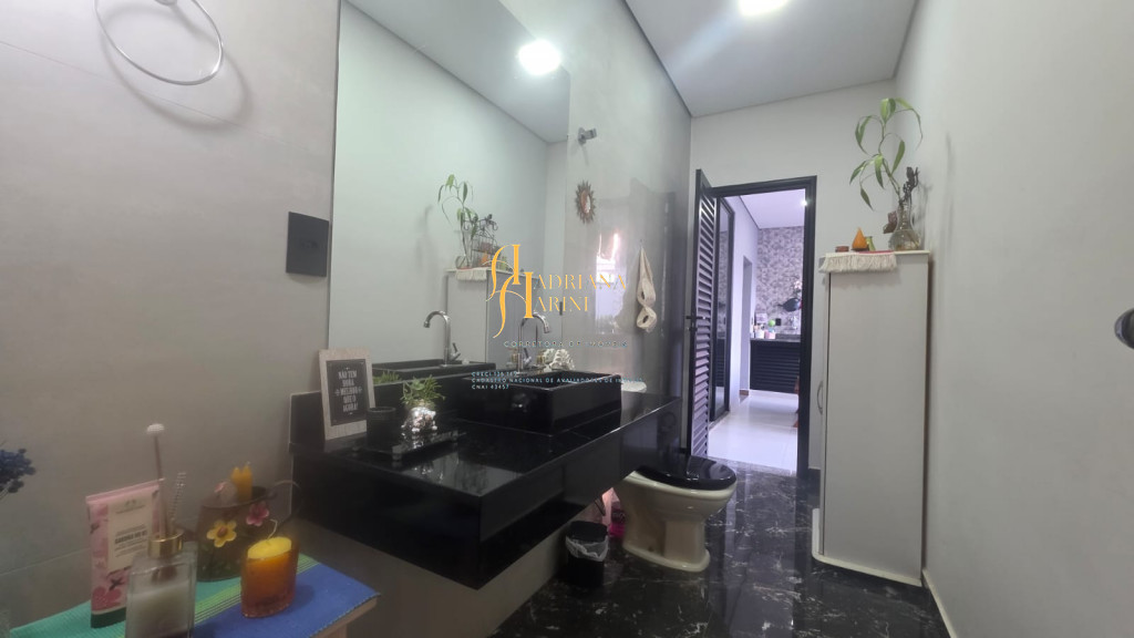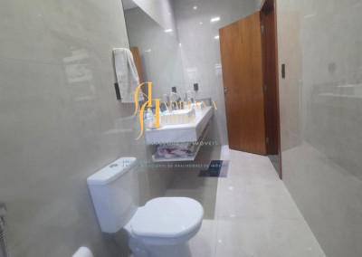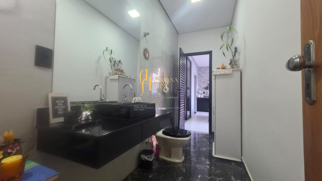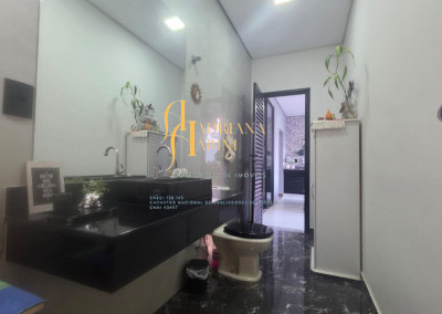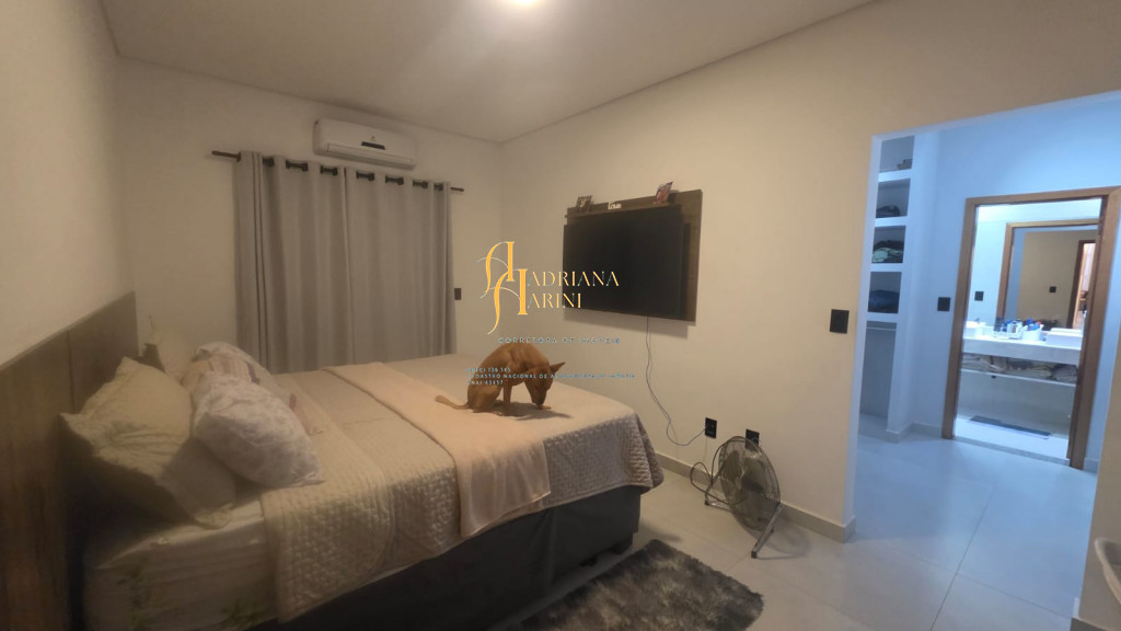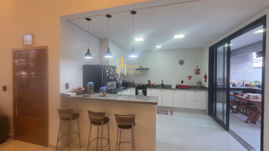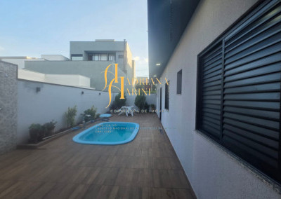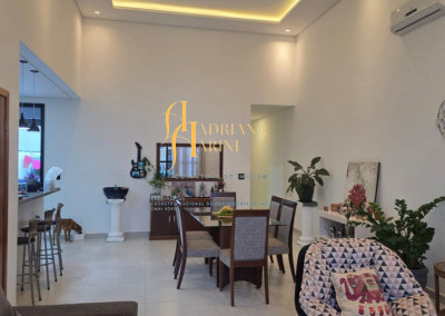 3 dormitórios sendo 1 suíte com closet; 1 banheiro social; 1 lavabo com 2 entradas, uma pelo interior da casa e outro pela área gourmet; sala de jantar e sala de TV com pé direito alto e luzes em Led; cozinha integrada à sala de jantar, com móveis planejados, fogão e forno; lavanderia coberta e com armários; área gourmet com churrasqueira e armários; piscina; vaga de garagem para 2 carros no coberto e 2 descobertos.
