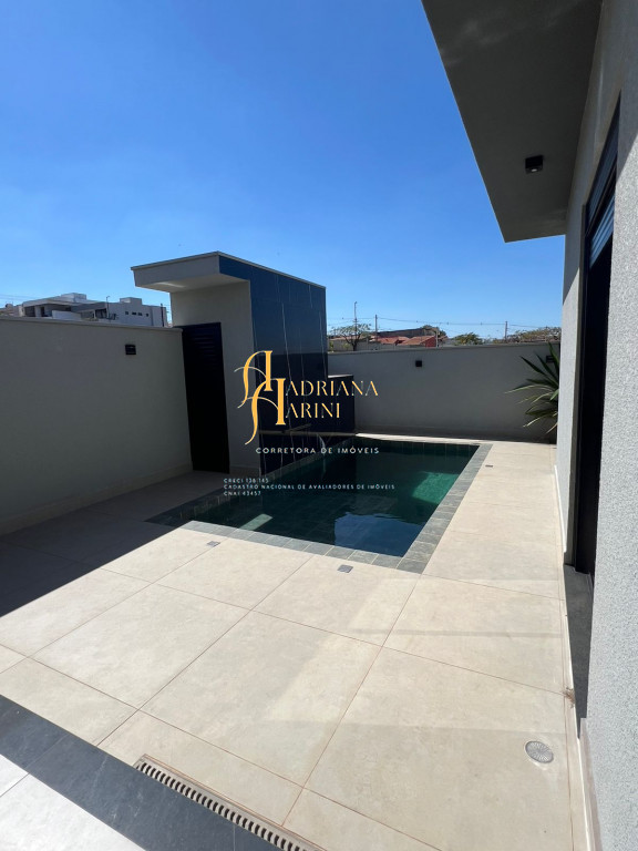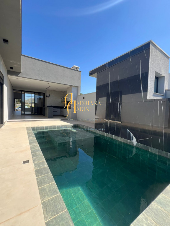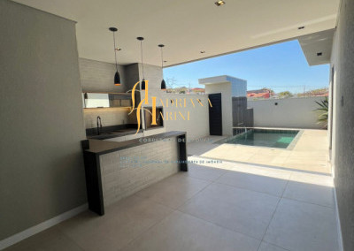3 suítes; escritório; lavabo; sala de estar com pé direito duplo; sala de jantar; cozinha americana integrada, área de serviço; 1 banheiro externo; área gourmet; piscina, vaga para 4 carros sendo 2 cobertos e 2 descobertos.