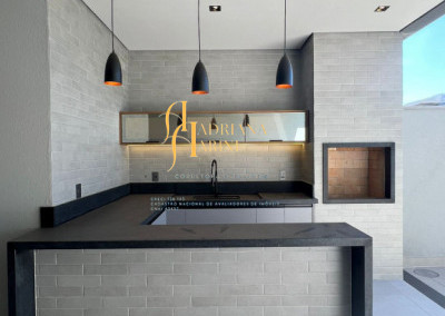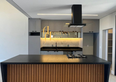 Granito na área gourmet e cozinha escovado; eletrodomésticos (2 Cook top e coifa); fechaduras em aço inox escovado; esquadrias de alumínio.