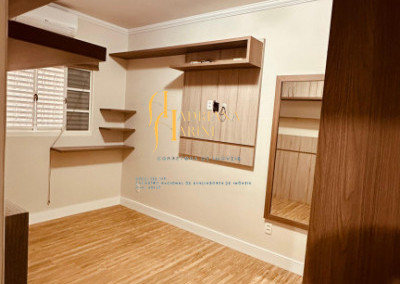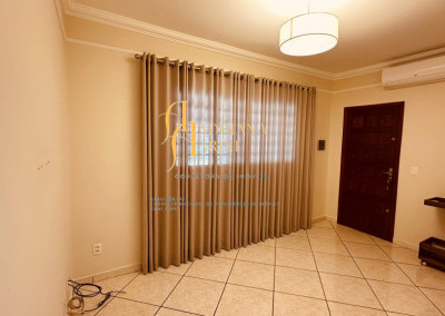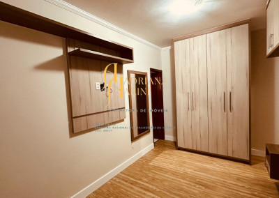 2 dormitórios (com cama e guarda roupas)sendo 1 suíte; sala 2 ambientes; cozinha com móveis planejados, fogão, geladeira e micro ondas; lavanderia com armários e máquina de lavar; vaga para 2 carros cobertos.