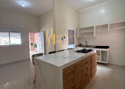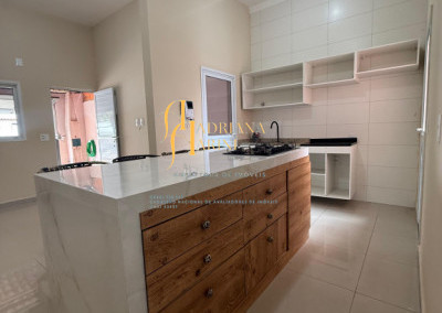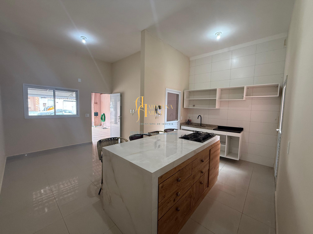 3 dormitórios, sendo 1 suíte; sala ampla integrada à cozinha com ilha; cozinha com móveis planejados e equipada com cook top; 1 banheiro social; lavanderia nos fundos; vaga para 2 carros cobertos.