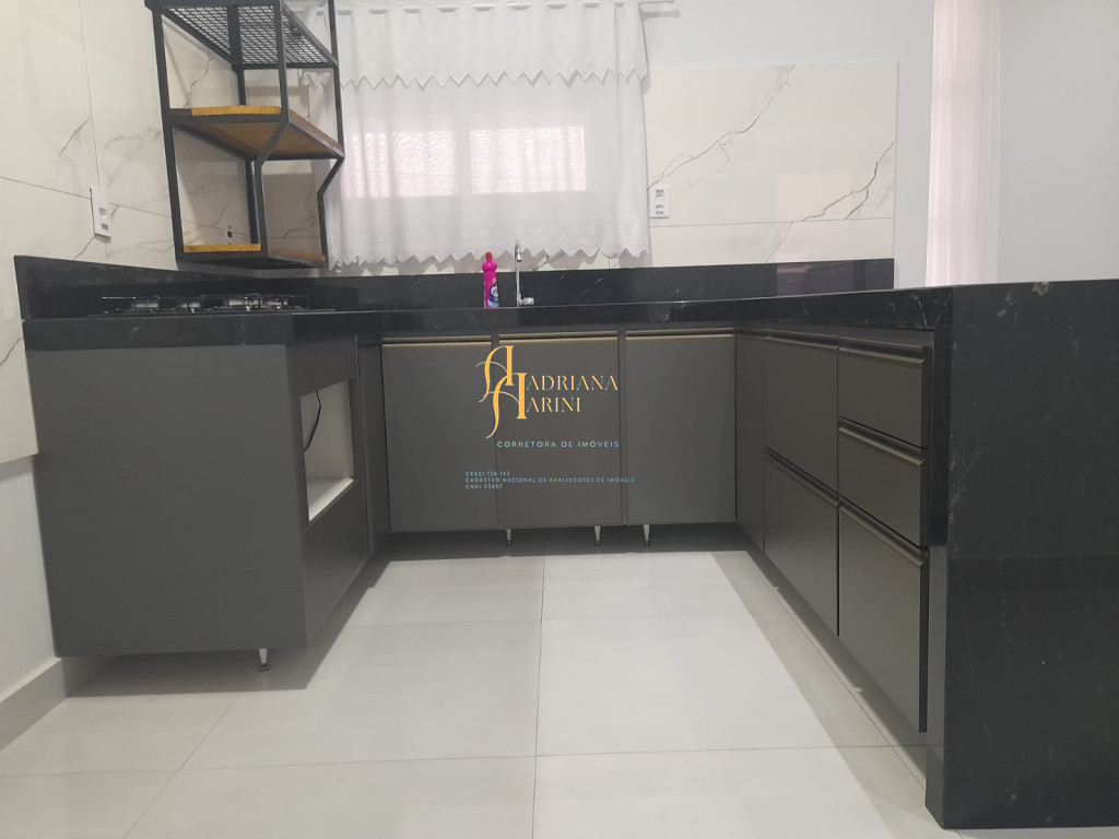 3 dormitórios sendo 1 suíte e closet com planejados; 1 banheiro social com planejados; sala estar com painel para TV e cortina; sala de jantar integrado com com a sala de TV e cozinha, pé direito alto de 4.2 metros; cozinha com móveis planejados; escritório com entrada independente; lavanderia; garagem coberta para 2 carros cobertos e 2 descobertos.