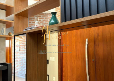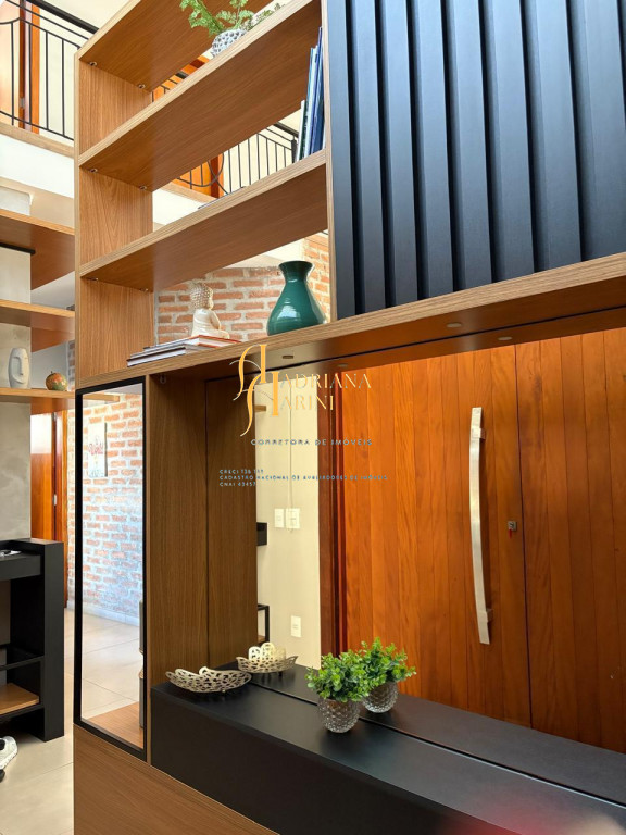 1 suíte master com closet com armários embutidos + 3 dormitórios; 1 banheiro social; cozinha e área de serviço com armários planejados; sala de estar e sala de jantar com buffet e cristaleira sob medida, estante e prateleiras. Vaga para 2 carros cobertos e 2 descobertos.