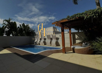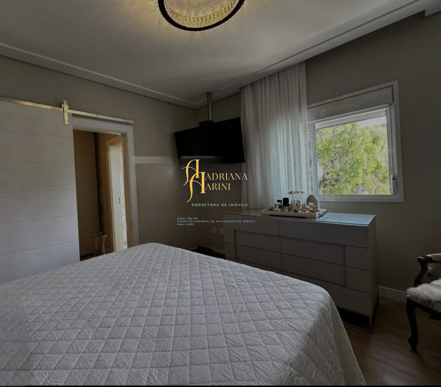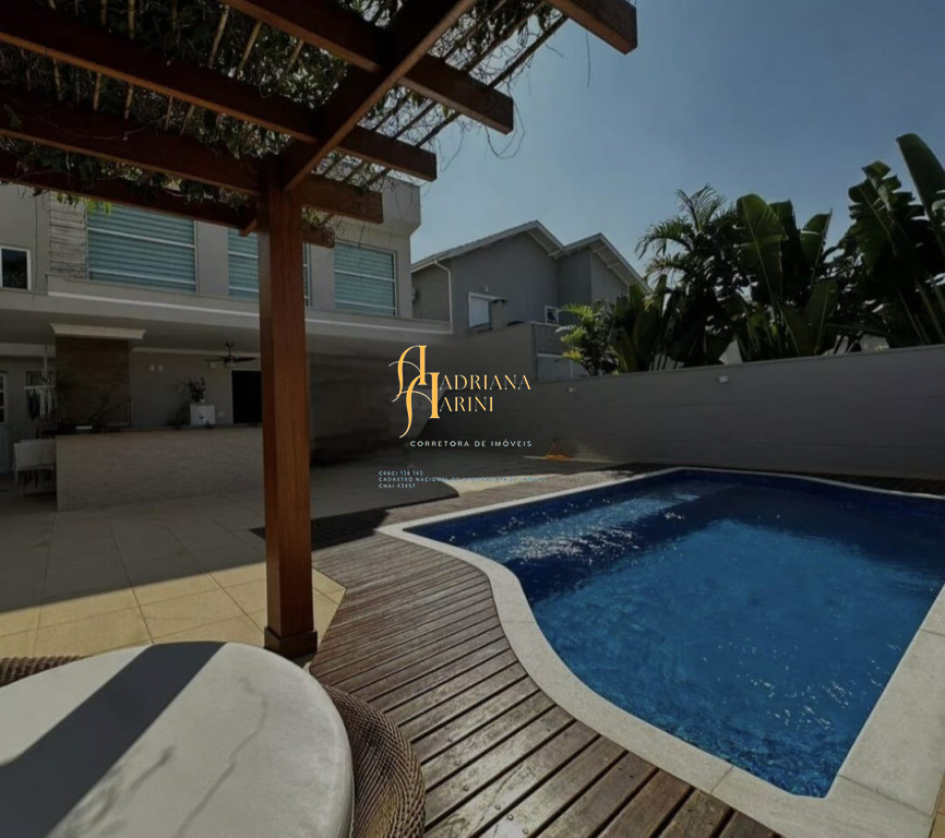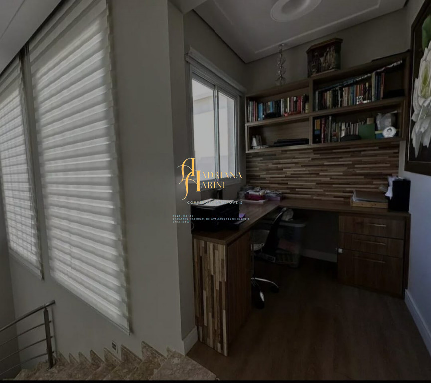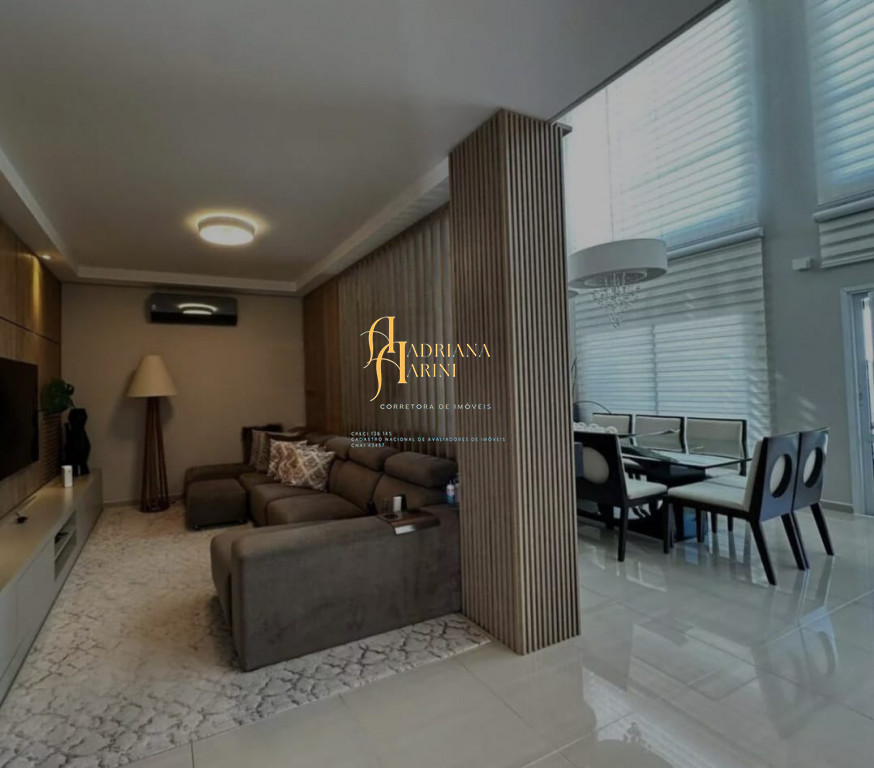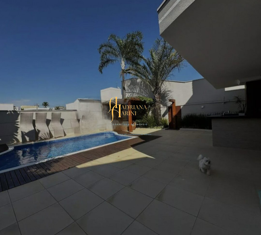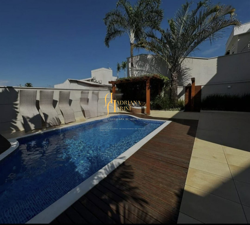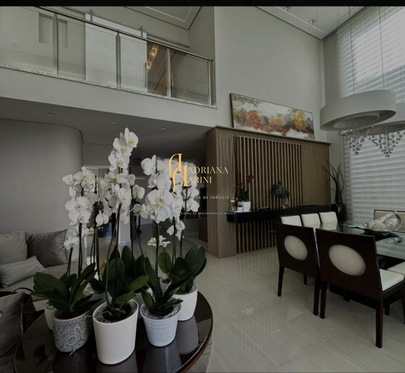 3 suítes com móveis planejados e ar condicionado; escritório; ampla sala de estar e jantar com pé direito duplo; sala de TV; cozinha com eletrodomésticos; quintal amplo com piscina e jardim; área gourmet com churrasqueira; lavanderia com armários; edícula; garagem para 2 carros cobertos e 2 descobertos.