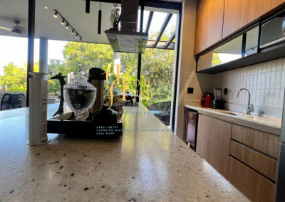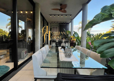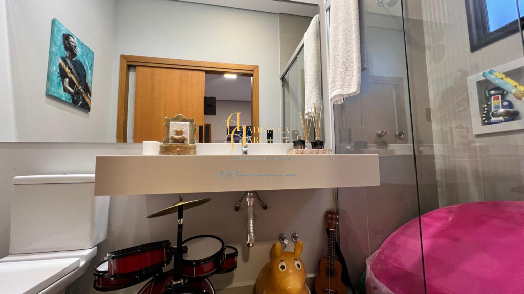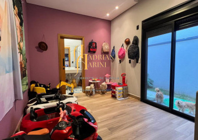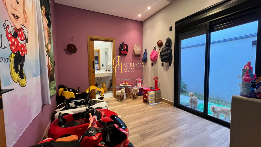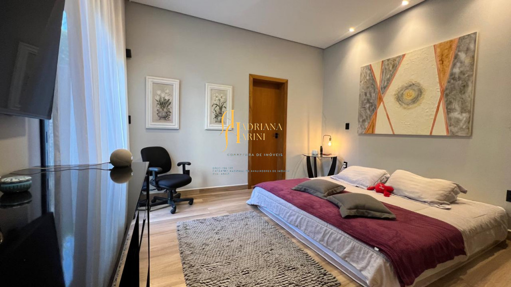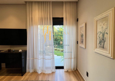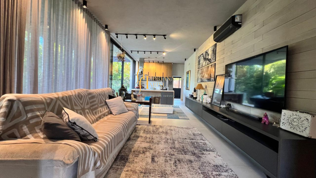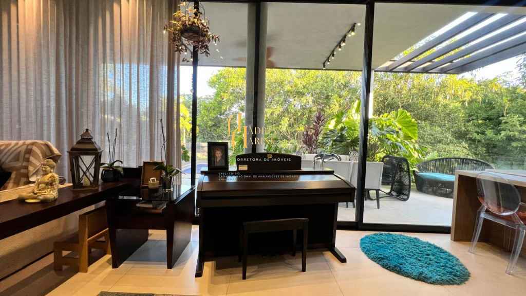 4 suítes sendo 1 com closet (todas as suítes com porta balcão e automatizadas); lavabo; sala 2 ambientes com home; cozinha com ilha, coifa, móveis planejados, cooktop e fogão (sala, cozinha e área gourmet integrados); despensa; quintal co acesso à área verde do condomínio e lago; piscina; lago ornamental em construção; depósito; 2 vagas de garagem coberta e 2 descobertas.