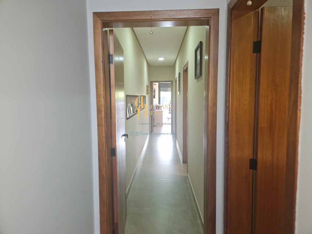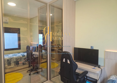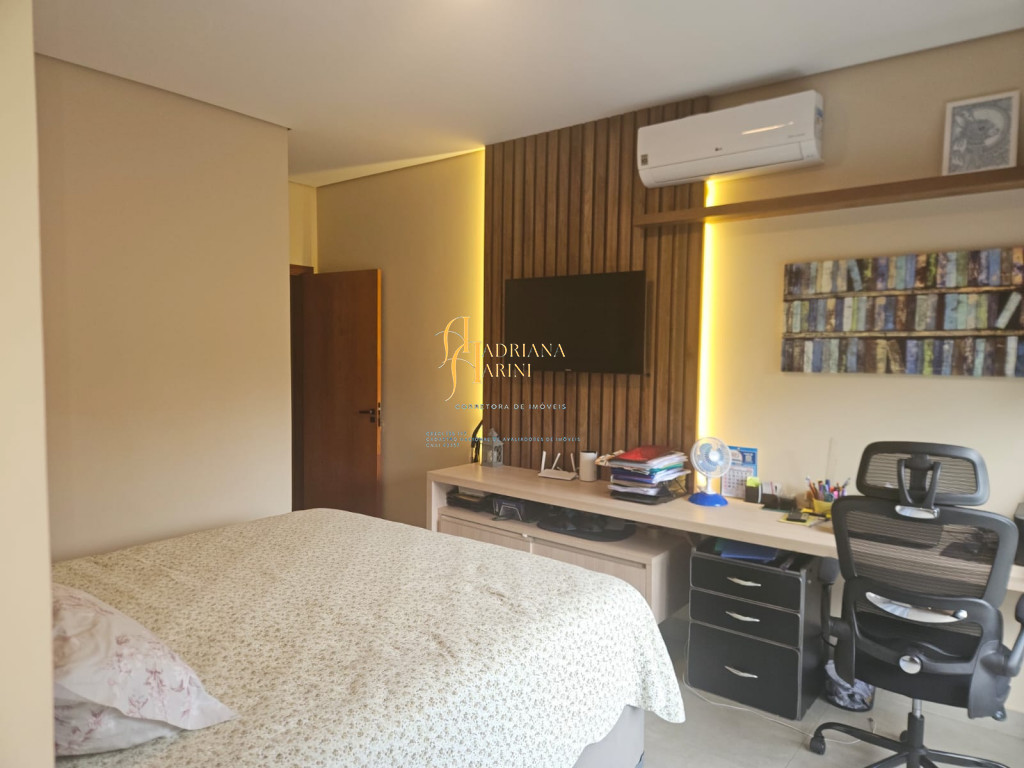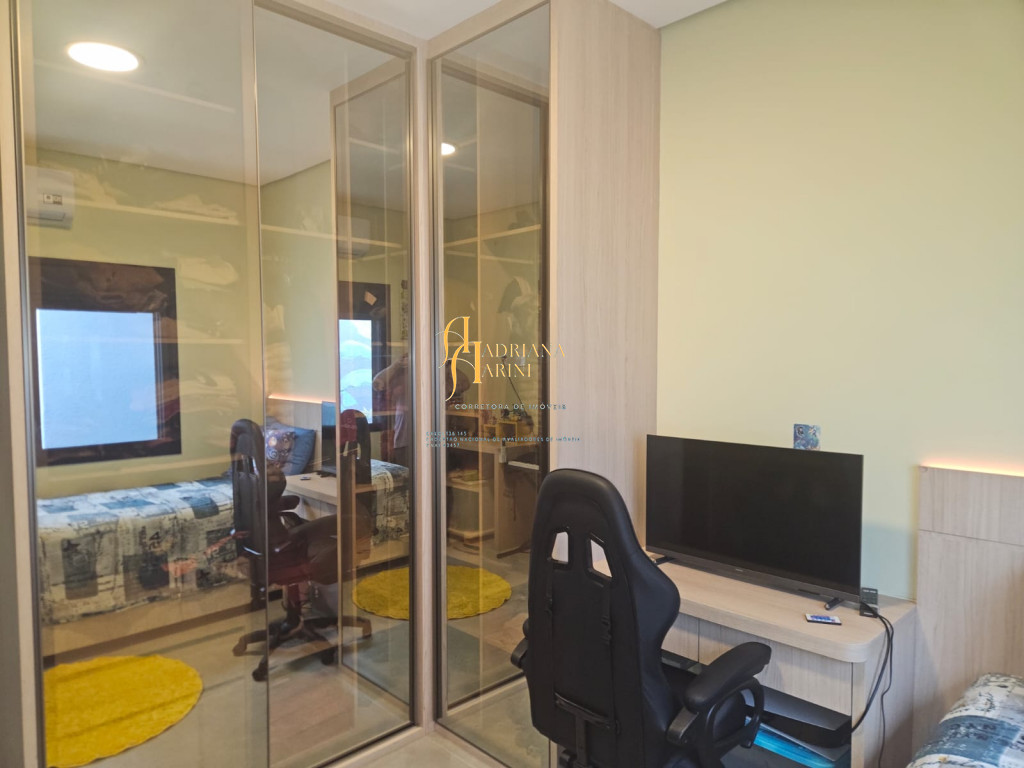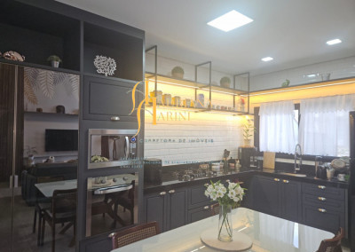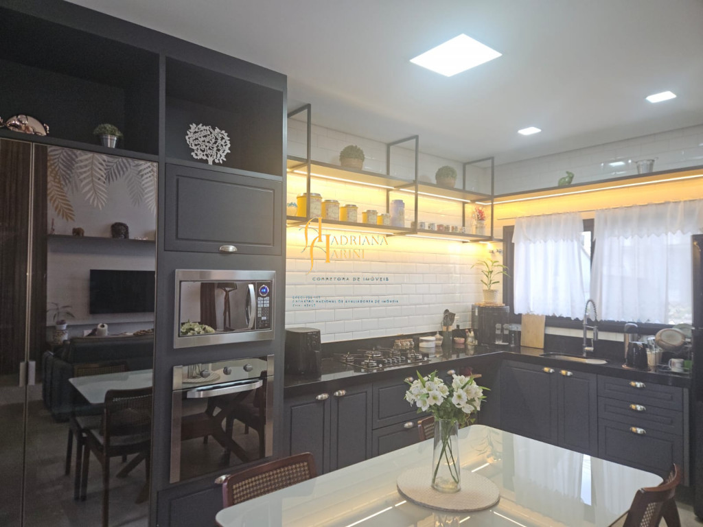 3 dormitórios, sendo 1 suite com closet, varanda e uma demi - suíte, todos com armários completos e marcenaria de primeira; 4 banheiros sendo 2 completos e 2 lavabos, todos com armários, ducha e box; sala integrada com a cozinha com painel; cozinha com armários, forno e fogão, completos com reflecta; lavanderia com armários e depósito grande; área gourmet completa e espaçosa com churrasqueira, painel para TV e armários; lavanderia com armários e depósito grande; vaga para 2 carros.