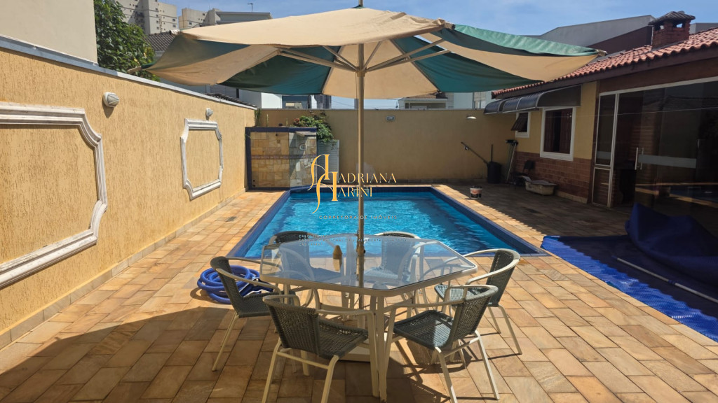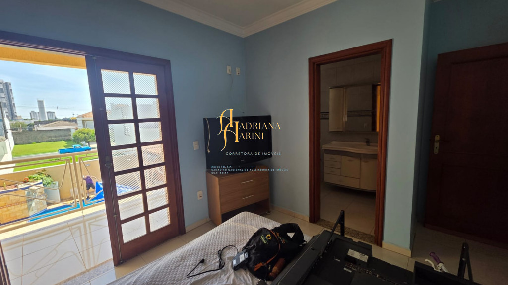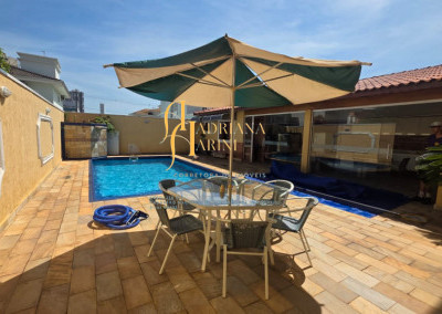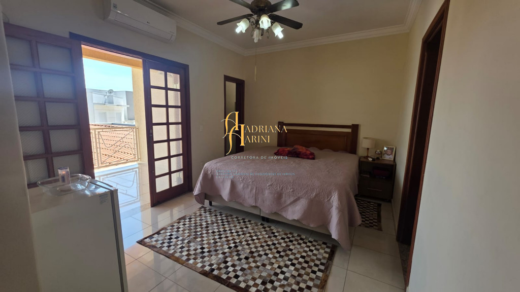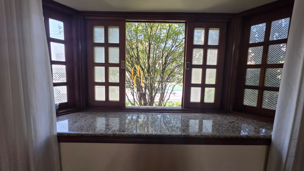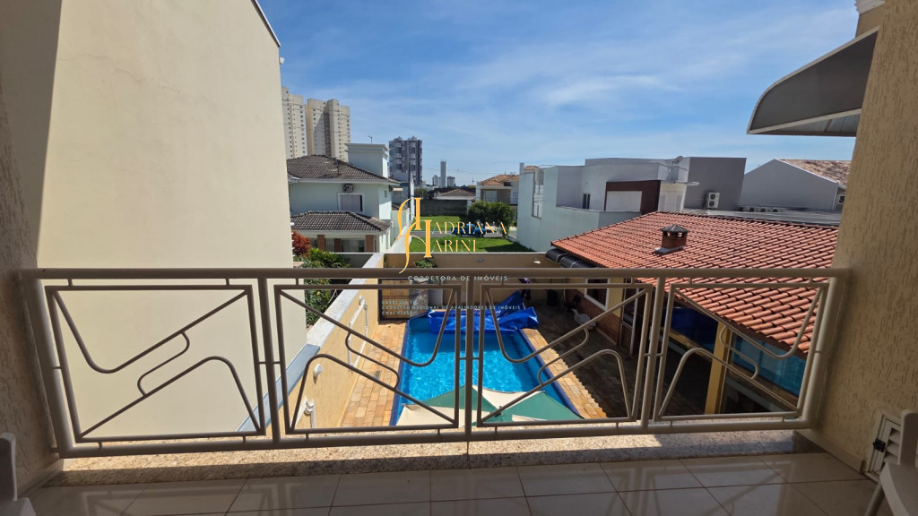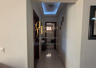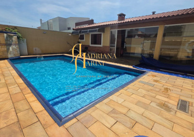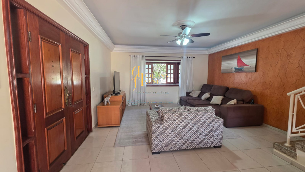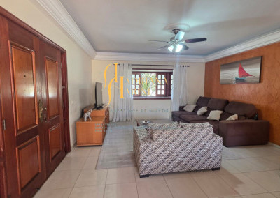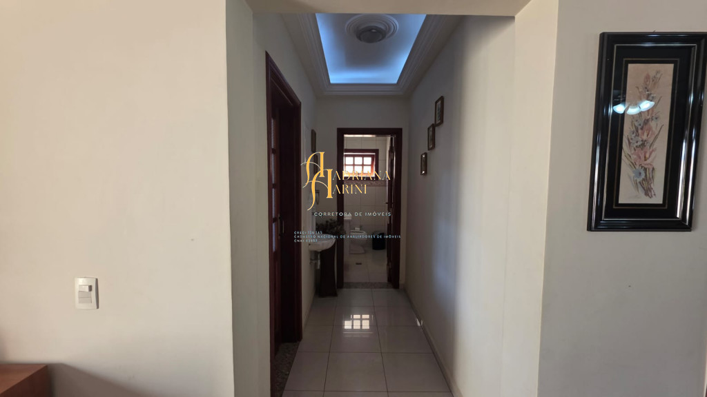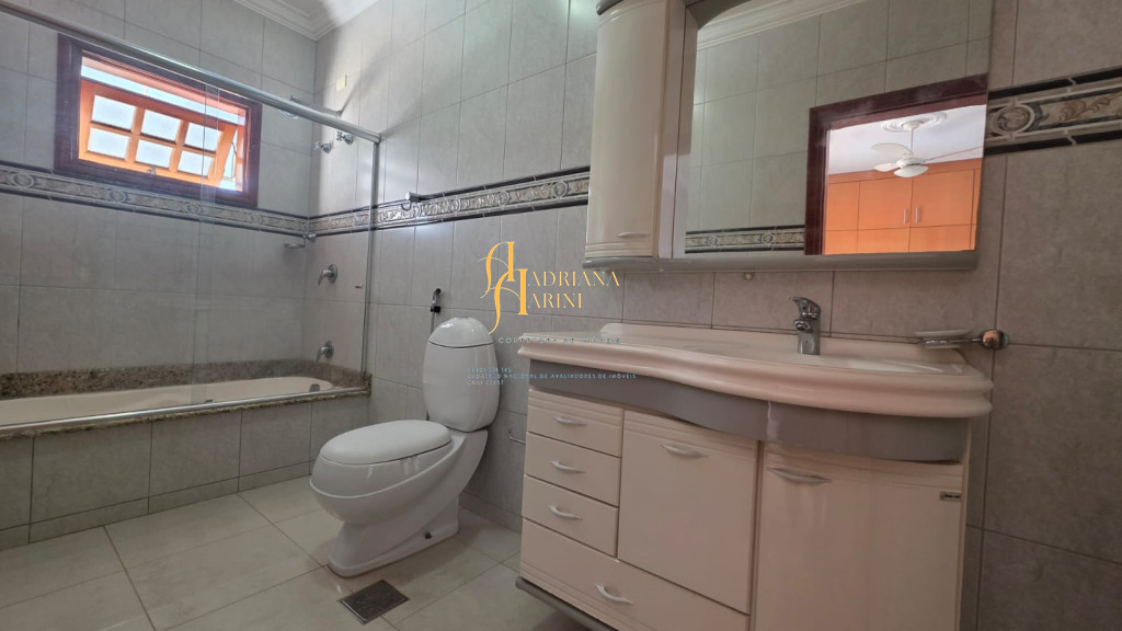 4 suítes sendo 1 com closet e ar condicionado; lavabo; sala de jantar; sala de TV; jardim de inverno; cozinha com móveis planejados, fogão e forno; lavanderia com armários; área gourmet com armários, toda fechada com vidros, churrasqueira; forno de pizza; 1 suíte para visitas ou ajudantes; vaga para 2 carros cobertos e 2 descobertos.