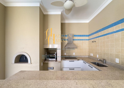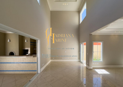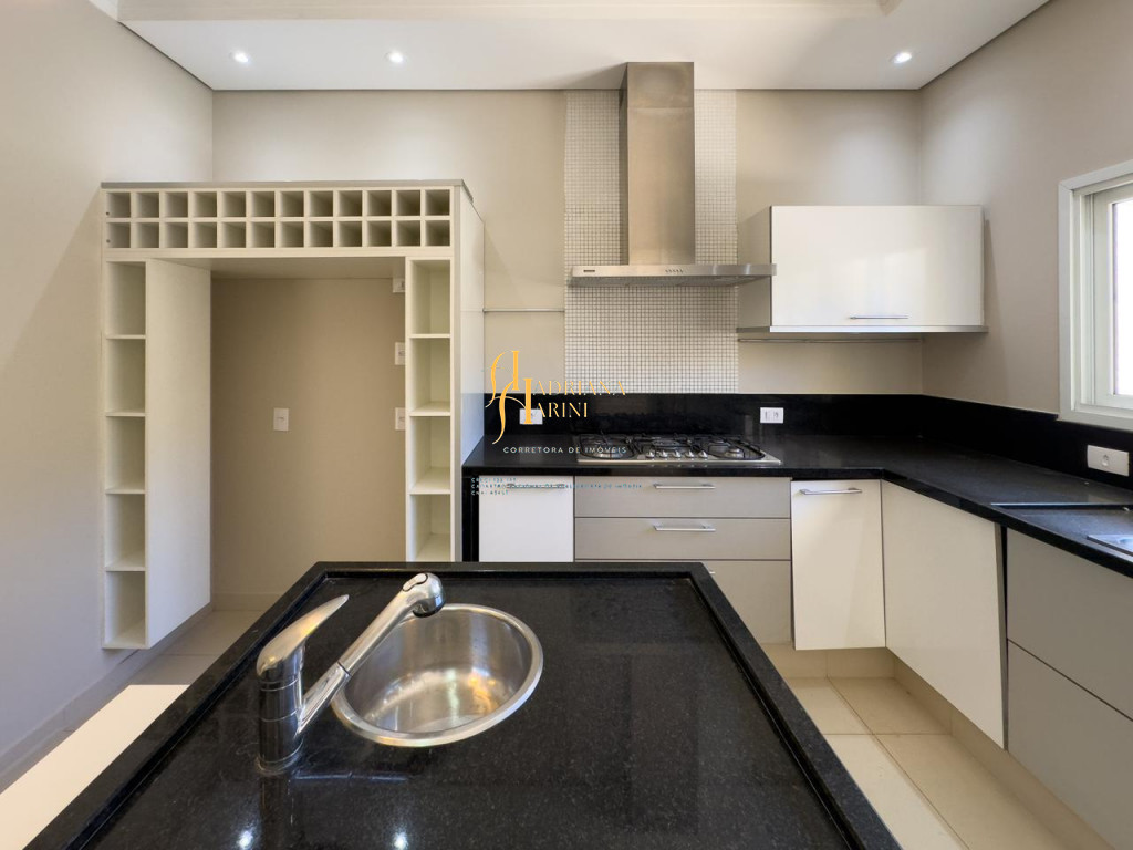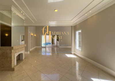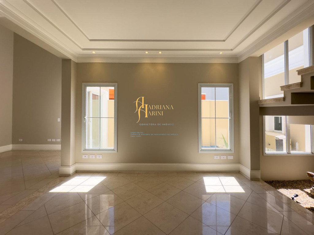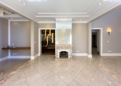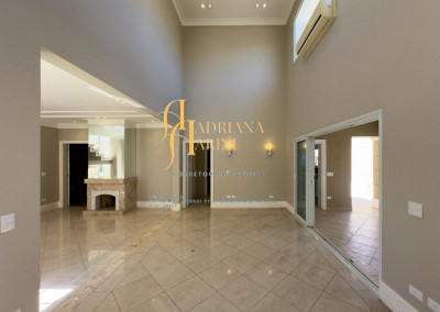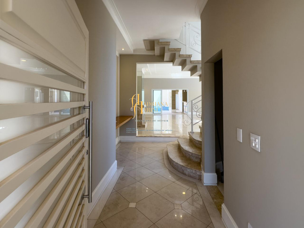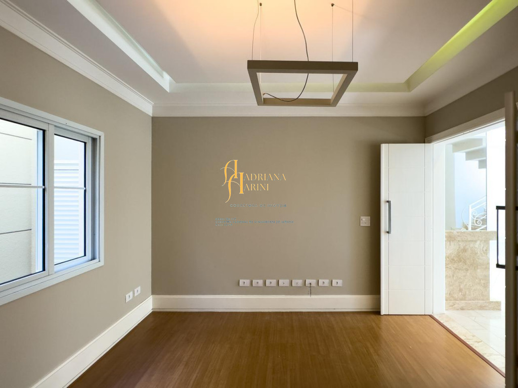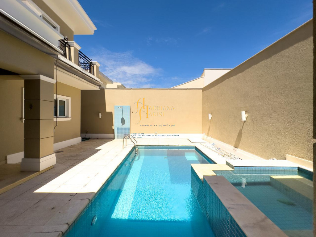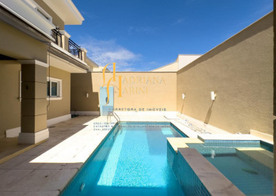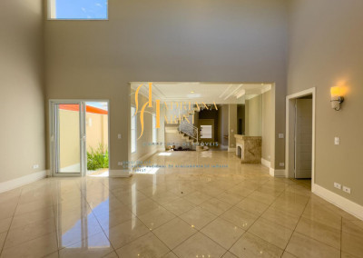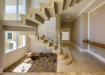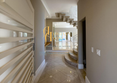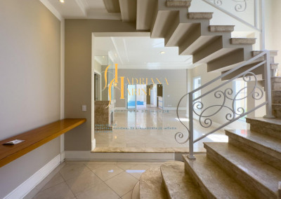 3 amplas suítes com sacada, todas com closet e moveis planejados; escada revestida de mármore travertino e proteção para quem tem filhos; sala de TV completa com sonorização e iluminação de cinema; sala de estar e jantar integradas com pé direito alto, além de um ótimo jardim de inverno; escritório; cozinha 2 ambientes com móveis planejados e despensa separada; área gourmet com churrasqueira, bancada de mármore e uma ampla piscina, sauna, lavabo e banheira de hidromassagem anexa à piscina.