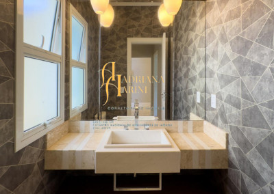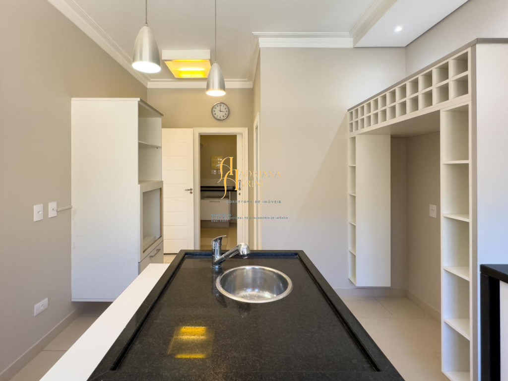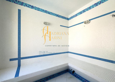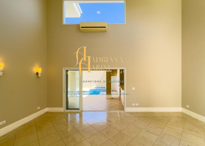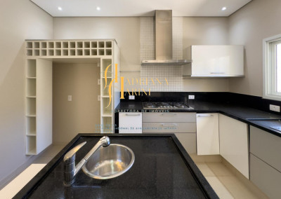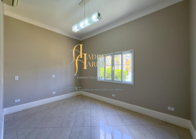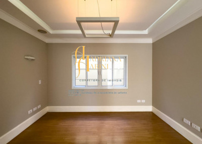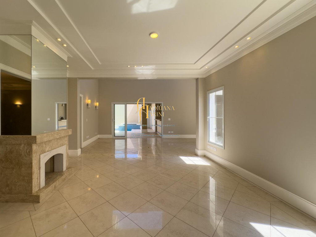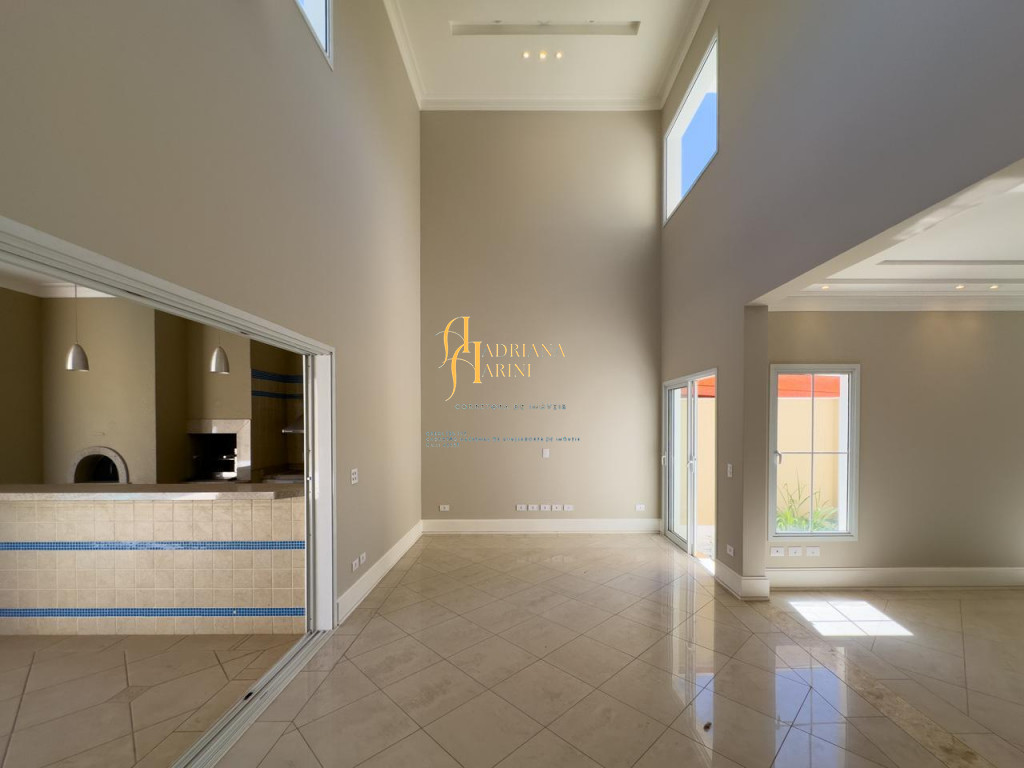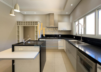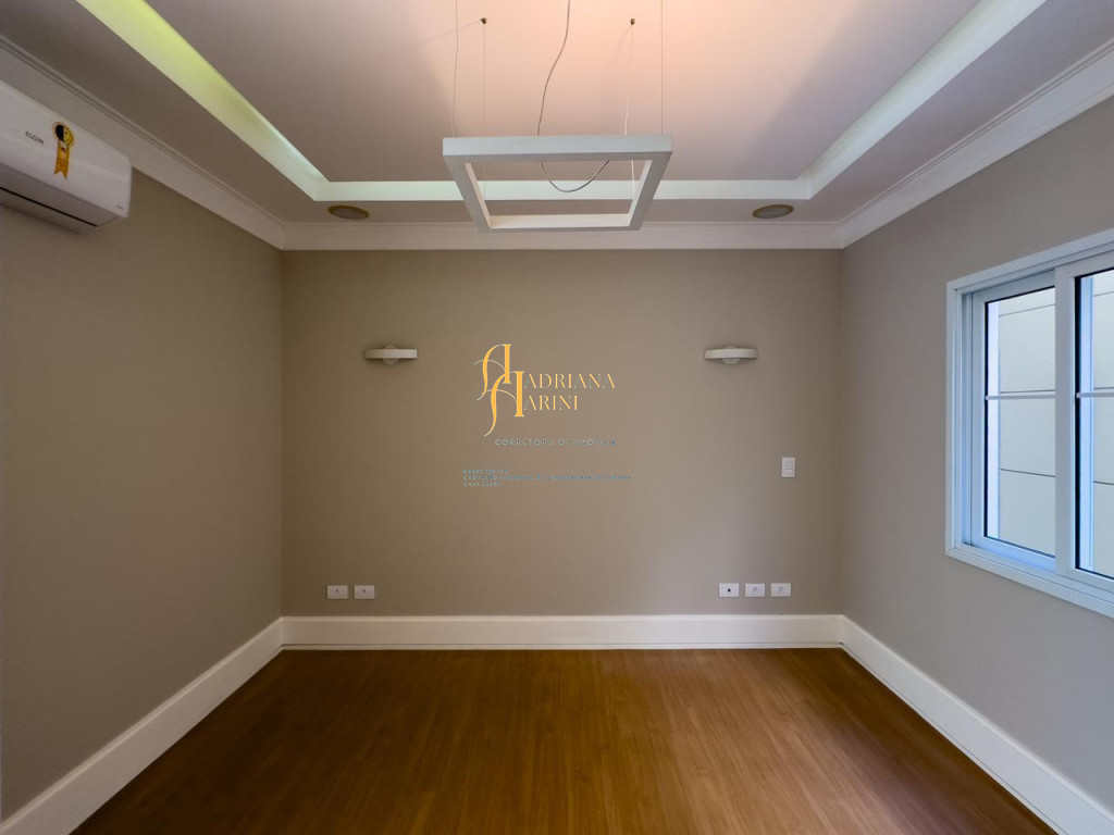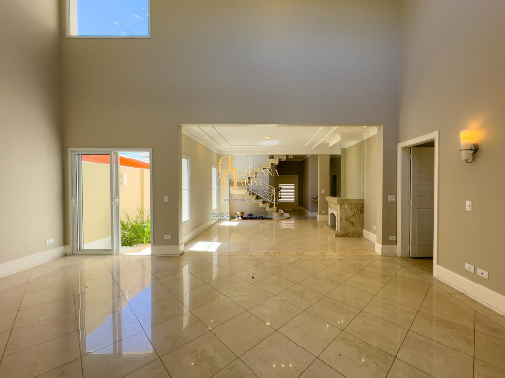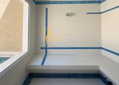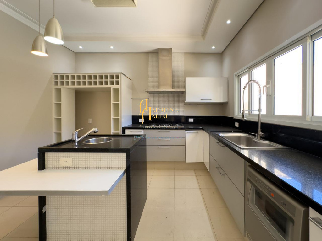 3 amplas suítes com sacada, todas com closet e moveis planejados; escada revestida de mármore travertino e proteção para quem tem filhos; sala de TV completa com sonorização e iluminação de cinema; sala de estar e jantar integradas com pé direito alto, além de um ótimo jardim de inverno; escritório; cozinha 2 ambientes com móveis planejados e despensa separada; área gourmet com churrasqueira, bancada de mármore e uma ampla piscina, sauna, lavabo e banheira de hidromassagem anexa à piscina.