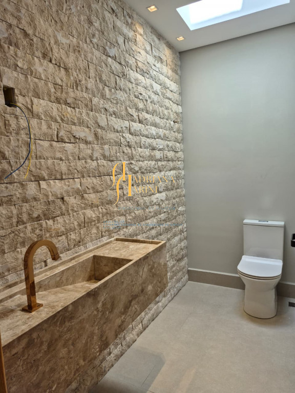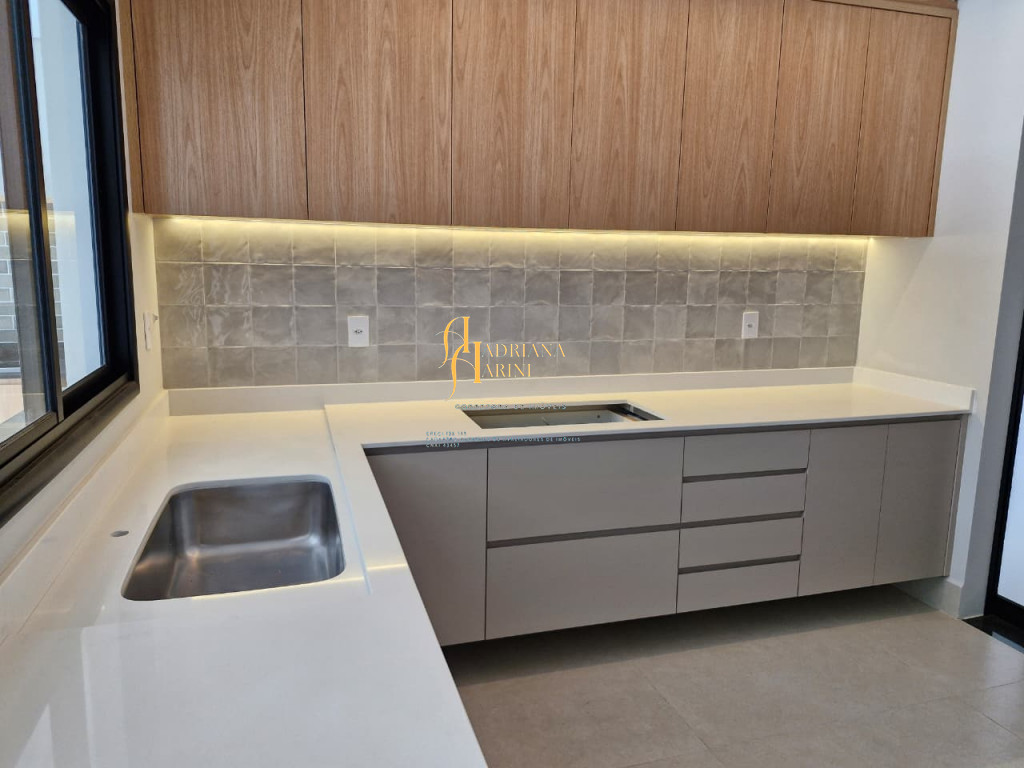 3 suítes; escritório; lavabo; cozinha equipada com cooktop, coifa, forno e microondas; despensa; sala integrada 2 ambientes com pé direito alto; espaço gourmet com churrasqueira; piscina com LED e paisagismo; banheiro externo; 4 vagas garagem sendo 2 cobertas.