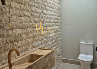 Diferenciais do imóvel: cozinha e banheiros com bancadas em quartzo branco; porta de entrada em ACM Pormade; fechadura digital; fachada com pedra Moledo; louças e metais Deca, Docol e Tramontina; fachada com pele de vidro.