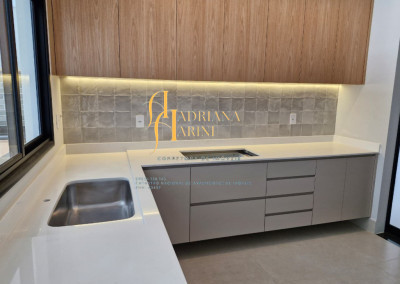 Móveis planejados na cozinha, área gourmet, banheiros.