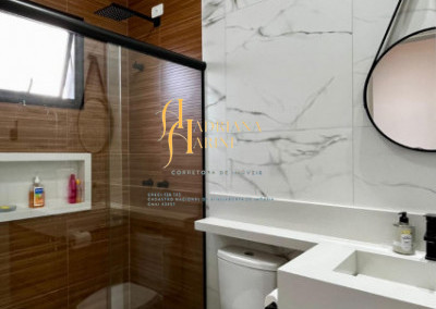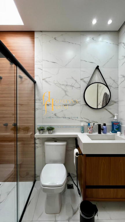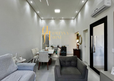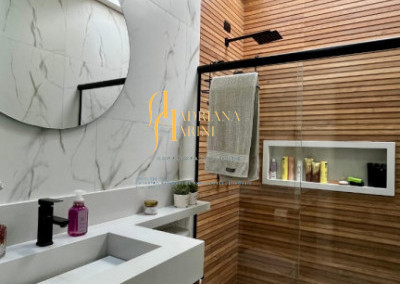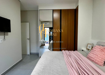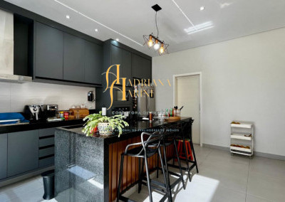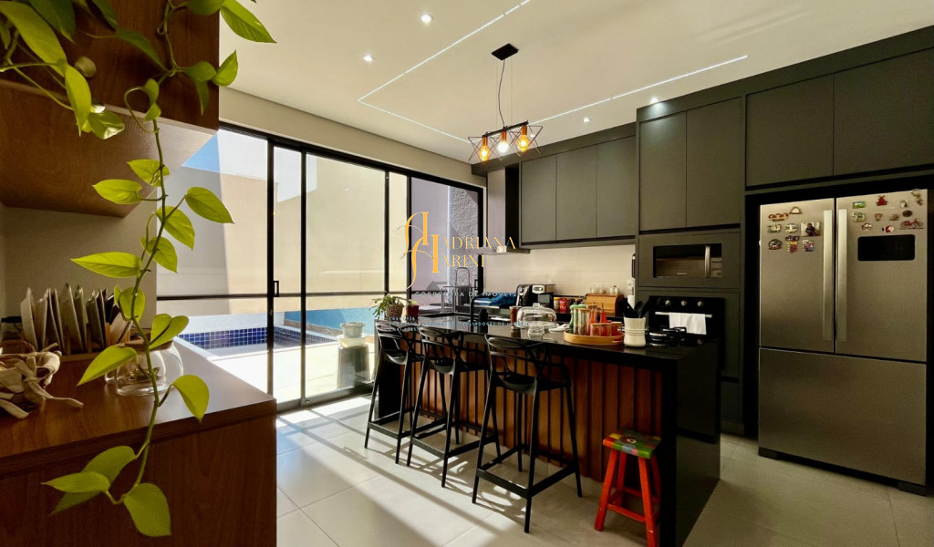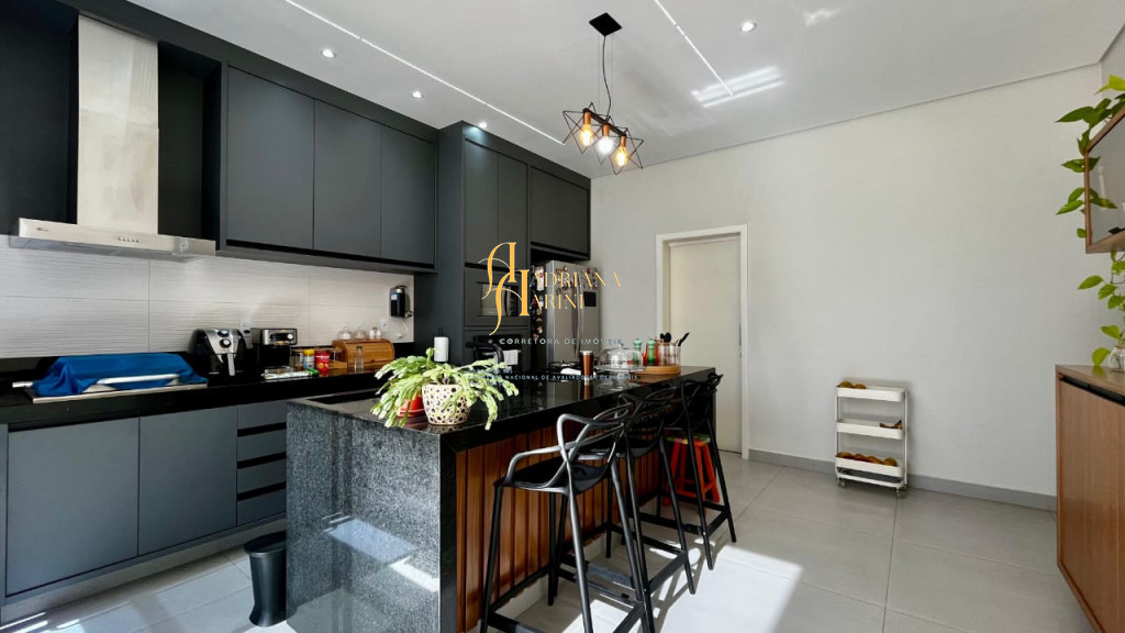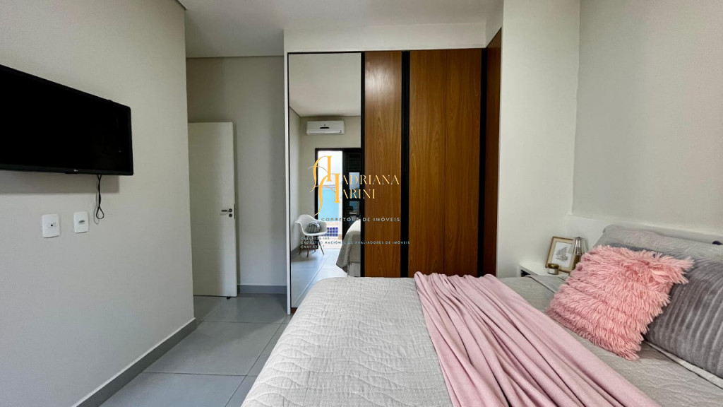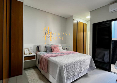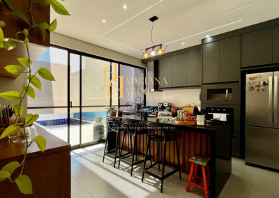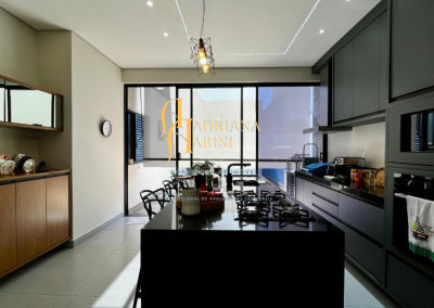 3 suítes com armários, espelho e box nos 3 banheiros; lavabo com armário e espelho; sala 2 ambientes com home, cortinas e ar condicionado; cozinha com armários, cooktop, Ilha central e churrasqueira à gás; área de serviço com armários; 4 vagas de garagem, sendo 2 cobertas.