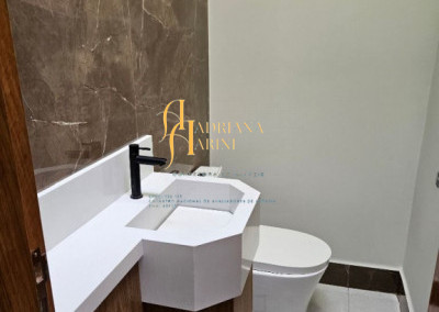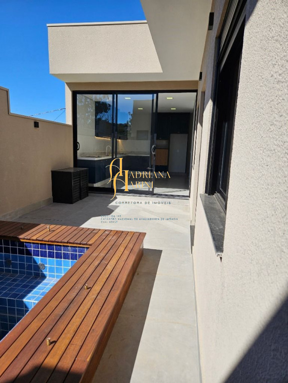 3 suítes; lavabo; sala de jantar e sala de TV com pé-direito alto; cozinha com armários planejados; despensa; piscina; 2 vagas de garagem.