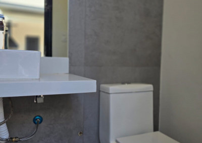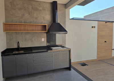 - Espaço gourmet com churrasqueira, armários e banheiro
